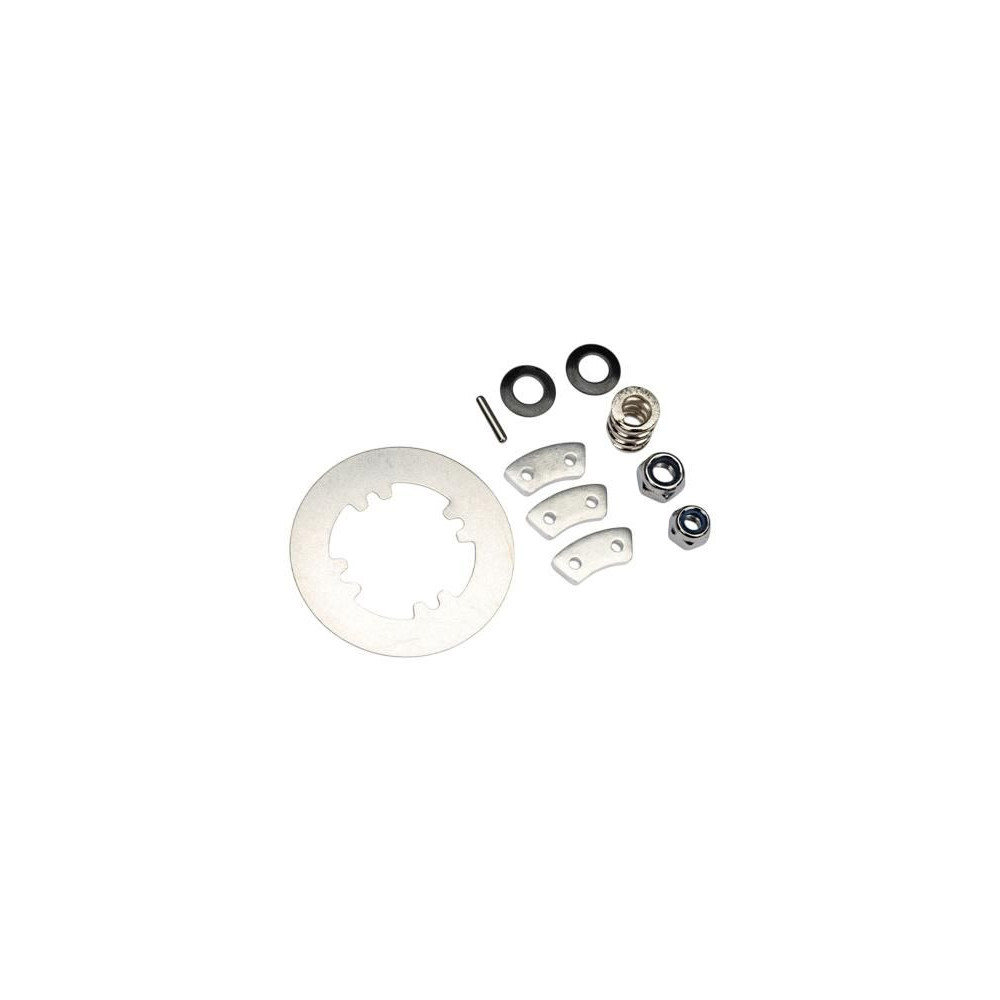 Traxxas HD tárcsakuplung javítókészlet. Tartalmaz: acél tárcsát, alumínium nyomólapokat (3), rugót, 2 x 9,8 mm-es csapot, 5 x 8 mm-es alátétet, 5 mm-es és 4 mm-es önzáró anyát.