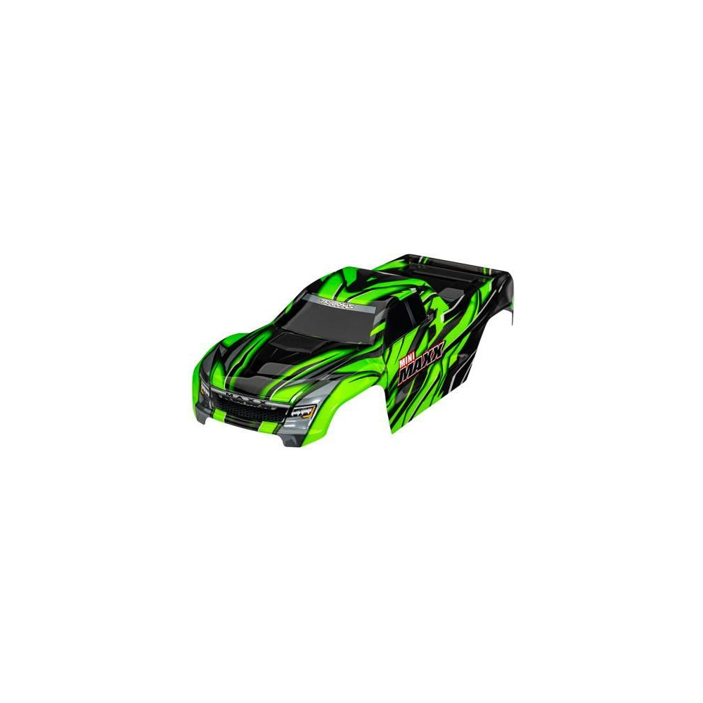 Traxxas Mini Maxx autók RC modelljeinek alkatrésze: zöldre festett karosszéria.
