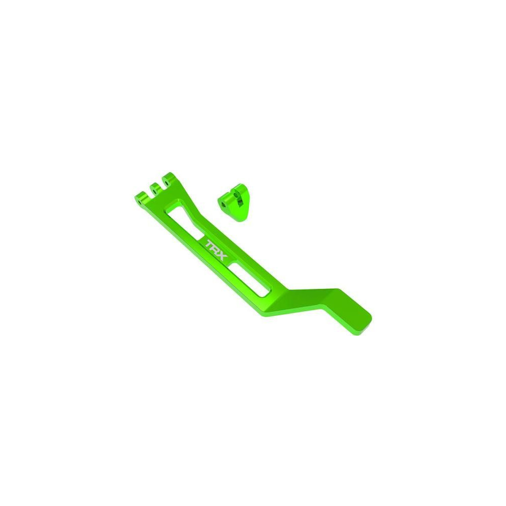 Tuning alkatrész Traxxas Mini Maxx / Mini XRT RC autómodellekhez: alumínium zöld elemtartó. Rendkívül ellenálló 6061-T6 alumíniumból készült, színes eloxálással a rendkívüli megjelenés érdekében. Zsanérral és 3x15 mm-es csavarral együtt.