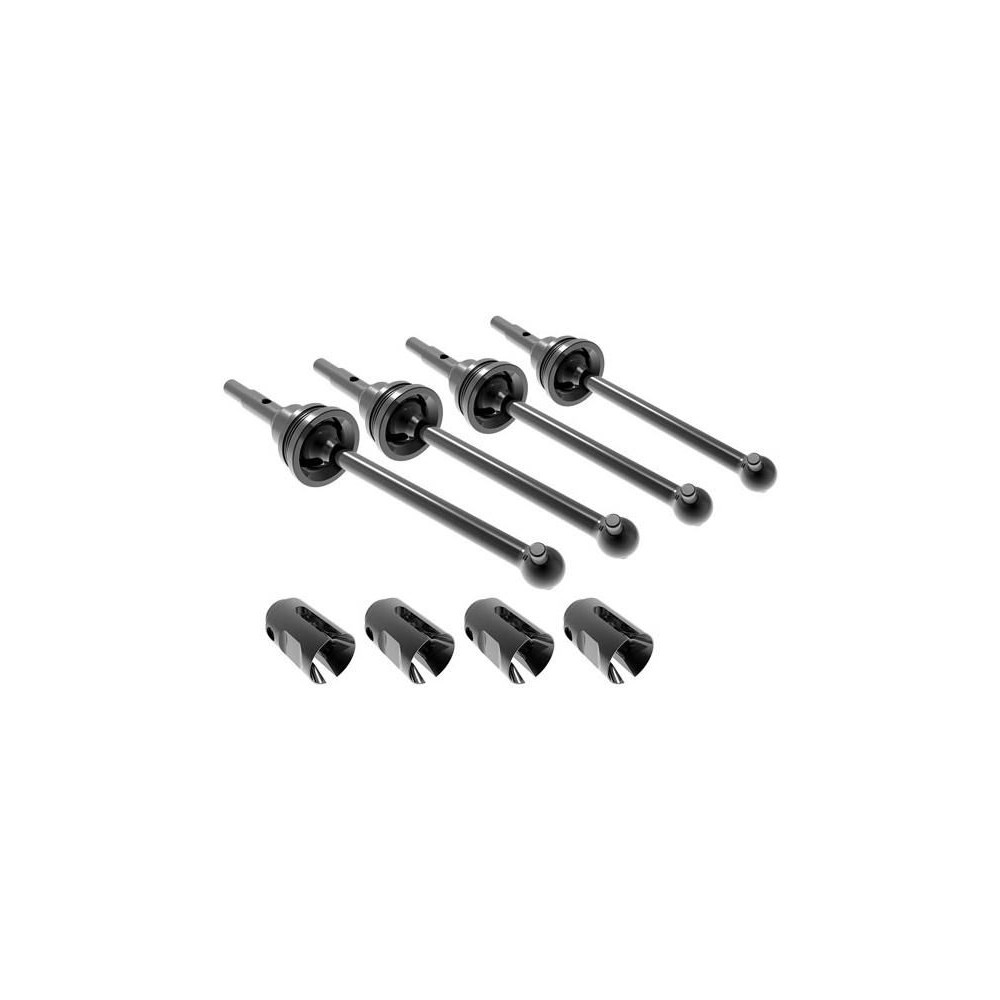 Tuning alkatrész Traxxas Mini Maxx autók RC modelljeihez: CVD acél féltengelyek szett. A csomag első vagy hátsó féltengelyeket (4), differenciálmű patkókat (4) és csapszegeket (4) tartalmaz.