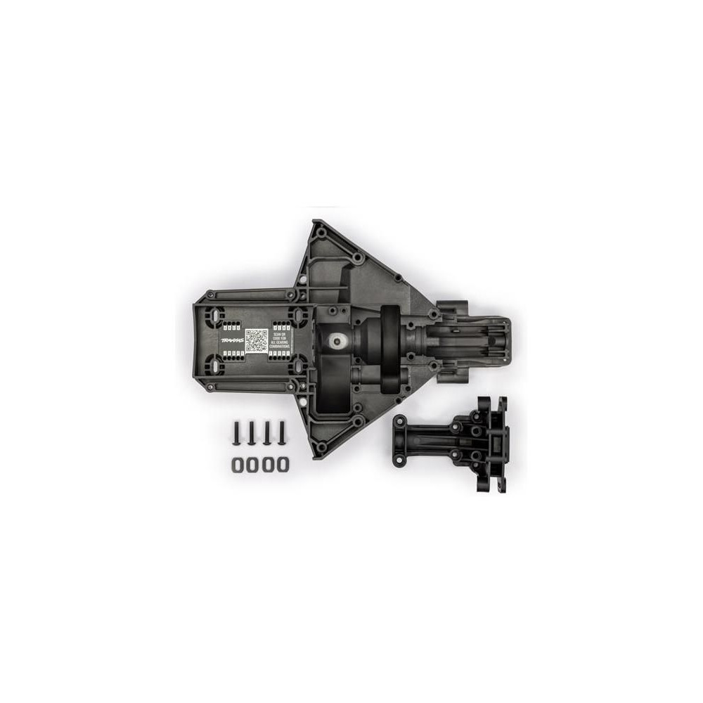 Traxxas X-Maxx 1:5 8S RC modellautó alkatrésze: hátsó alváz válaszfal (felső és alsó), beleértve a motortartó bakokat is.