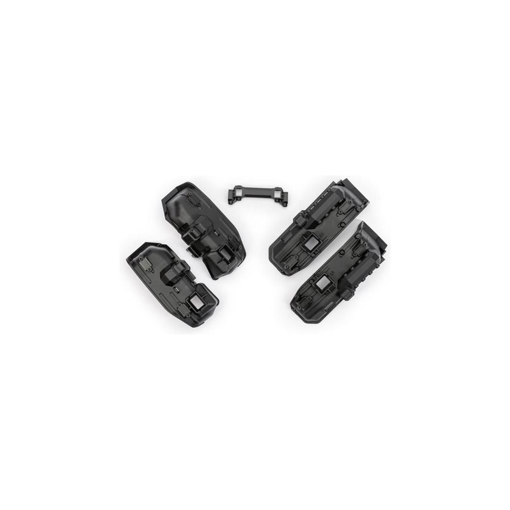 Traxxas belső (keskeny) sárvédők (2x elöl és 2x hátul) rögzítőrendszerrel. Sárvédő lámpaburkolatokkal (8 db), első akkumulátortároló lemezzel és rögzítő tartozékokkal - 3x8-as csavar (4)/ 2,5x6-os CS (10) csavar.