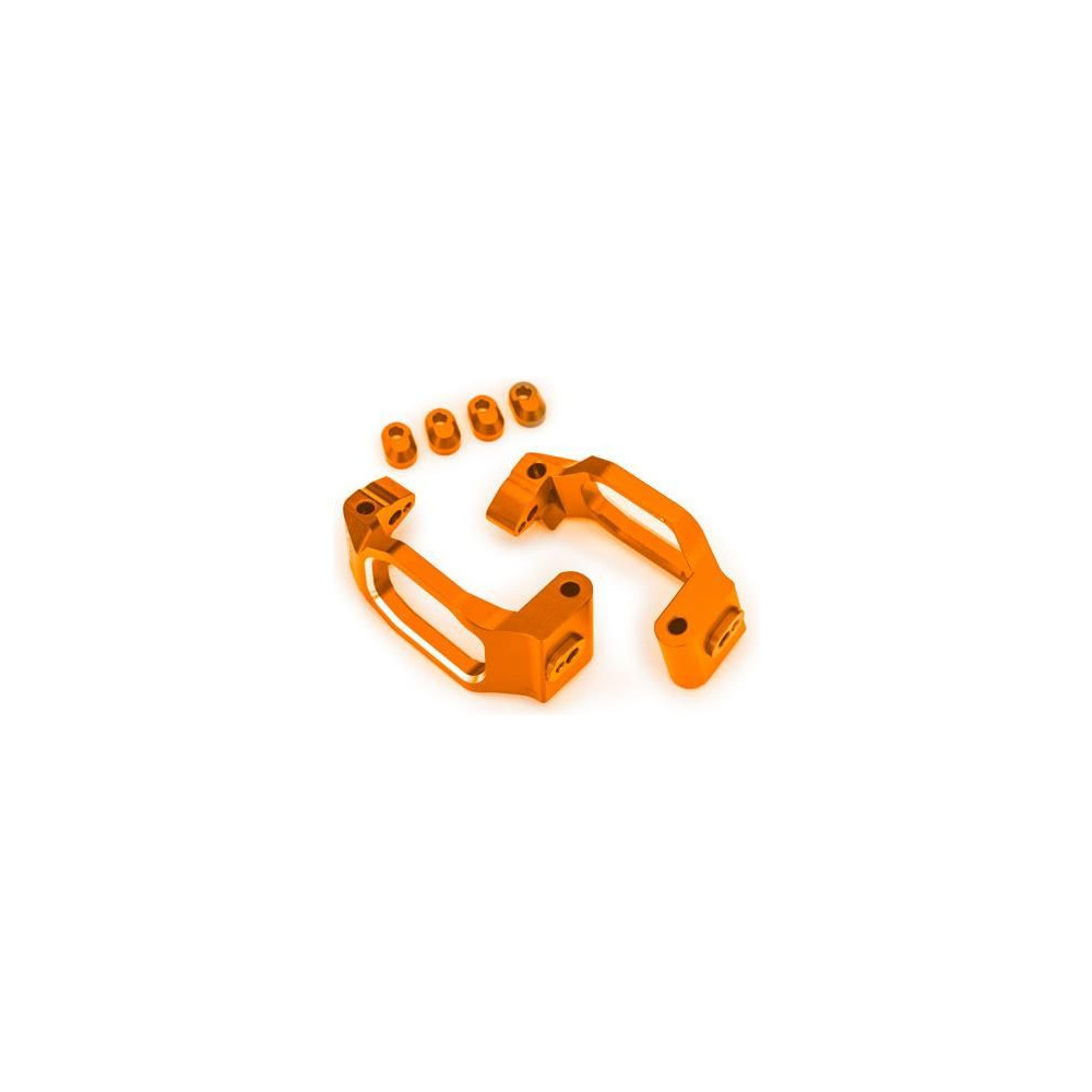 Nagy szilárdságú 6061-T6 alumíniumból készült Traxxas felfüggesztő blokk, CNC-n precízen megmunkálva a geometria megőrzése érdekében, narancssárga eloxálással a lenyűgöző modell megjelenés érdekében. Tartalmazza: 4x 4x22 mm-es csapot, 4x 3x6 mm-es csavart, 4x ütközőt. Tunigny-i rész.