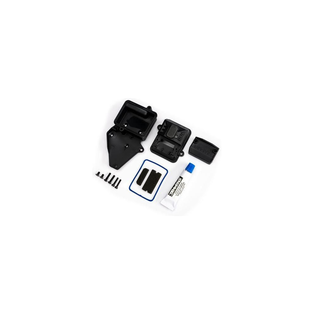 Traxxas Jato 4x4 RC autómodell alkatrésze: vevőegység. Tartalmazza a dobozt, gumidugót, habszivacs tömítőgyűrűket, szilikon tömítőgyűrűt, kábelvédőt, zsírt, csavart: 2,5x12 mm CS (2) / 3x6 mm CCS (2) / 3x12 mm BCS (2).