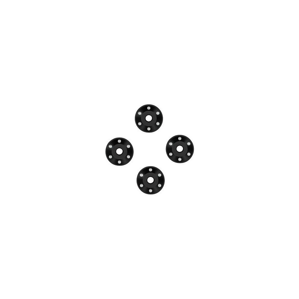 Traxxas keréktárcsa alátét alumínium fekete (4), Pro Scale kerékrendszerhez is tervezve, moduláris tárcsaalkatrészekkel és kiegészítő nejlongyűrűkre ragasztott gumikkal.