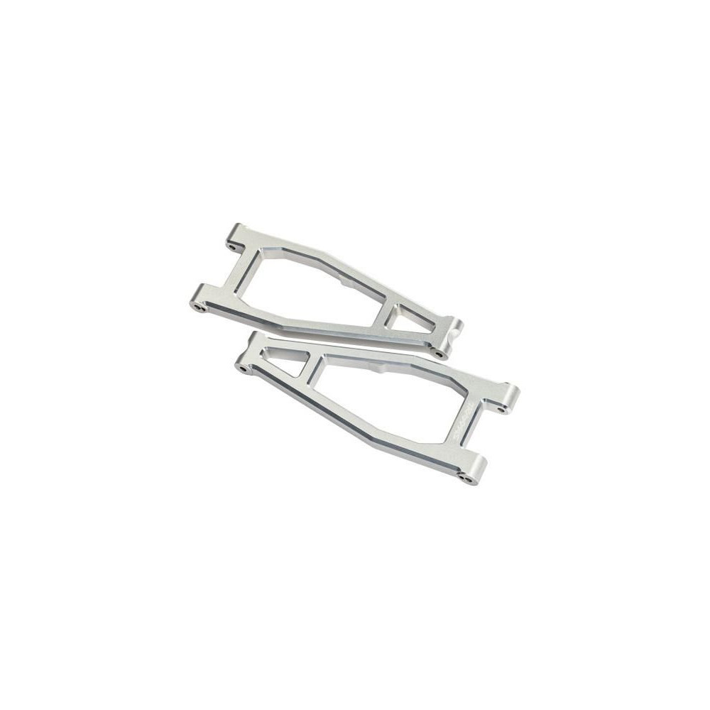Tuning alkatrész Traxxas 1:5/1:6 RC autó modellekhez (Funco): alsó lengőkar felső első alumínium ezüst (2). Nagyon tartós 6061-T6 alumíniumból készült, 3x8 mm-es BCS (8) csavarral.
