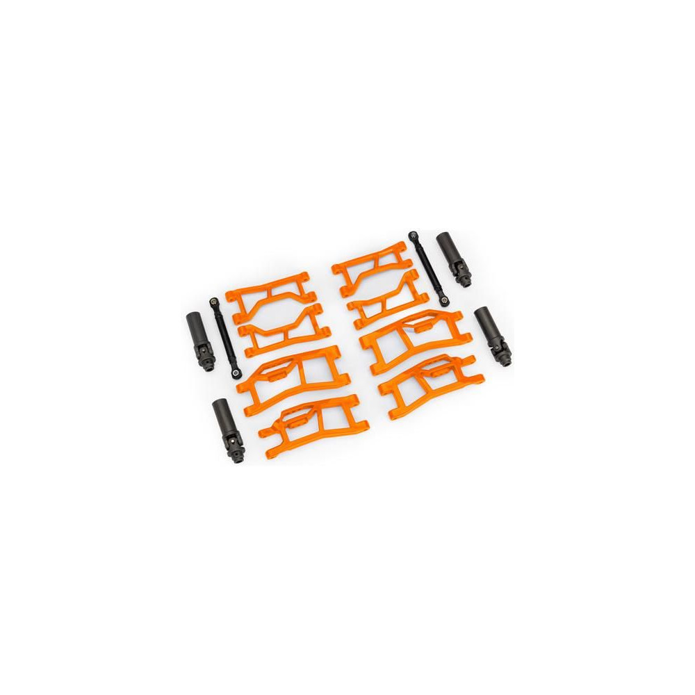 A Mini Wide Maxx narancssárga keréktartó készlet 1:12 méretarányban szélesíti ki a Traxxas Mini (XRT) RC modelledet a nagyobb stabilitás érdekében. A felfüggesztéskészlet 2 cm-rel szélesíti a nyomtávot. A készlet mindent tartalmaz, ami a bővítéshez szükséges (első és hátsó lengőkarok, kormányrudak, kardántengelyek - külső rész).