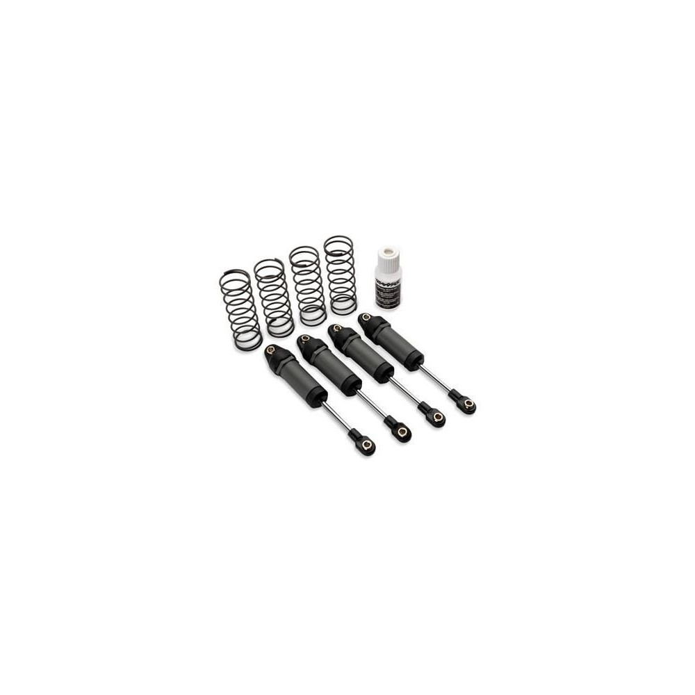 Ultra Shock lengéscsillapító hosszú (elöl) szürke (4 db). Az olajjal töltött Ultra lengéscsillapítók X-gyűrűket használnak a tökéletes tömítés és a szupersima teljesítmény érdekében. Összeszerelt hangtompító (4), beleértve a rugók (4), alátétek a rugókhoz és olaj a lengéscsillapítókhoz. Alkatrész Traxxas 1:10 és 1:12 RC autómodellekhez.