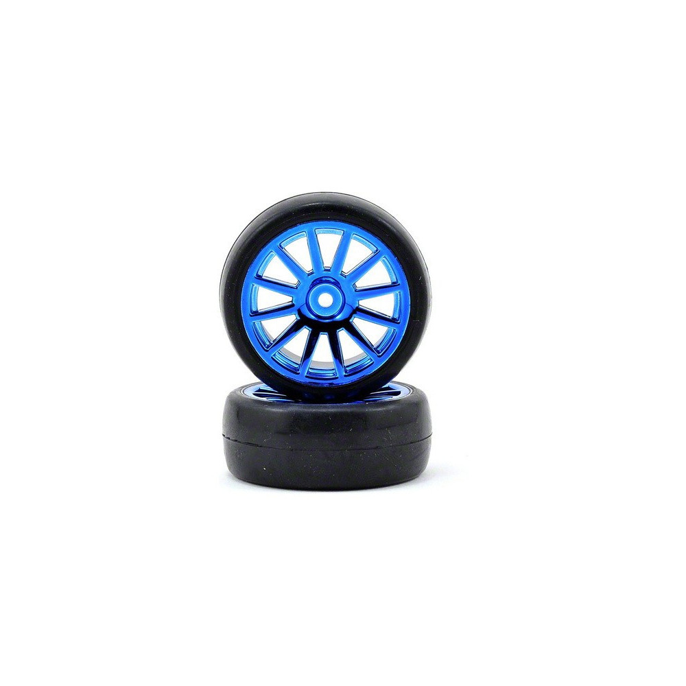 Komplett univerzális kerekek LATrax Rally 1:18 RC autókhoz. 12 küllős tárcsa kék krómozott, slick gumikkal. Tárcsa mérete 35x17 mm. Teljes méret 44x17 mm. A hordozó 8 mm-es hatszögletű, 11 mm-es eltolással.