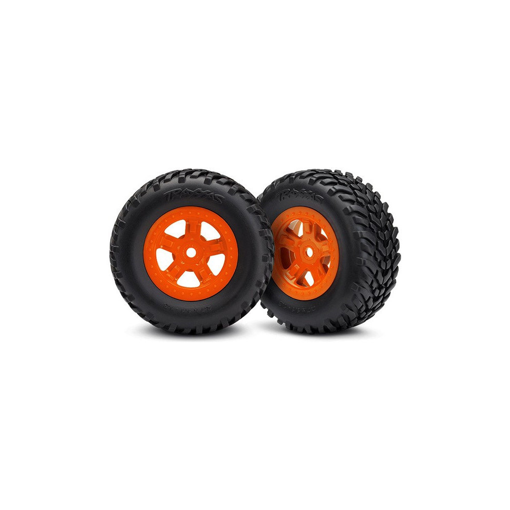 Teljes univerzális kerekek RC autókhoz. Öt küllős SCT tárcsa narancssárga színben SCT off-road gumikkal (2db a csomagban).