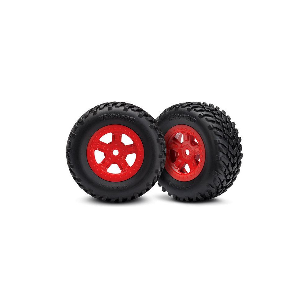Teljes univerzális kerekek RC autókhoz. Öt küllős SCT tárcsa piros színben, felragasztott SCT off-road abroncsokkal. Tárcsa mérete 38/50x25 mm (2db a csomagban). 66x28 mm teljes méret. A hordozó 12 mm-es hatszögletű, 19 mm-es eltolással.