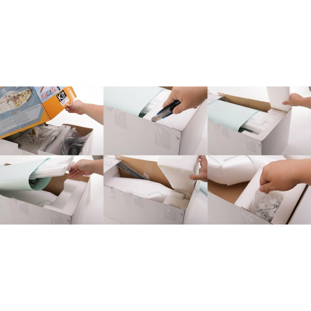 Az RR készlet tartalma: összeszerelt törzs, szárnyak és farokfelületek az Elaportól, beépített motorral, szabályozóval és szervókkal, egy sor rugóstag, dúralumínium alváz kerekekkel, 15x8"-os légcsavar és részletes útmutató az összeszereléshez és repüléshez. A kiegészítőkkel ellátott táskát a dobozban (hungarocellben) rejtve találod, lásd a fotót.