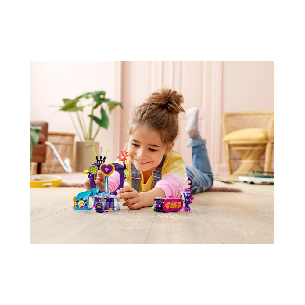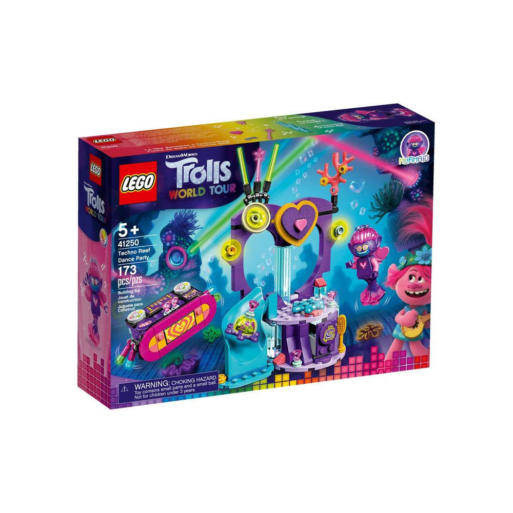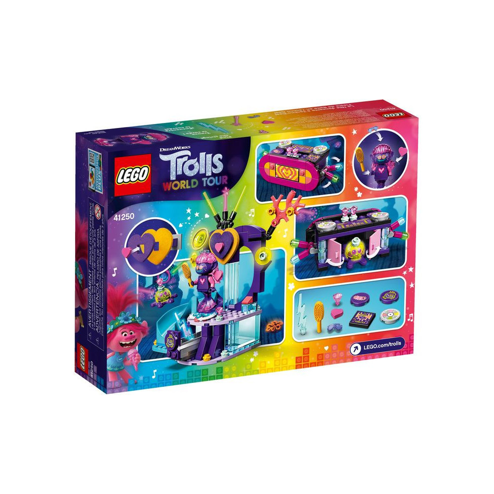 Egy zenei ihletésű víz alatti kaland a Trolls rajongóknak! A gyerekek imádni fogják a LEGO® Trolls World 41250 - Techno Dance Party játékkal eljátszani a film kedvenc jeleneteit. Először megépíthetik a keverőpultot és a színpadot, majd egy sellőt helyezhetnek a szív alakú zátonyra, és nézhetik, ahogy zúz.