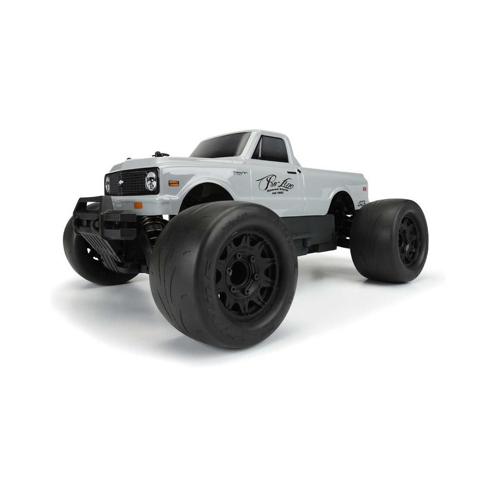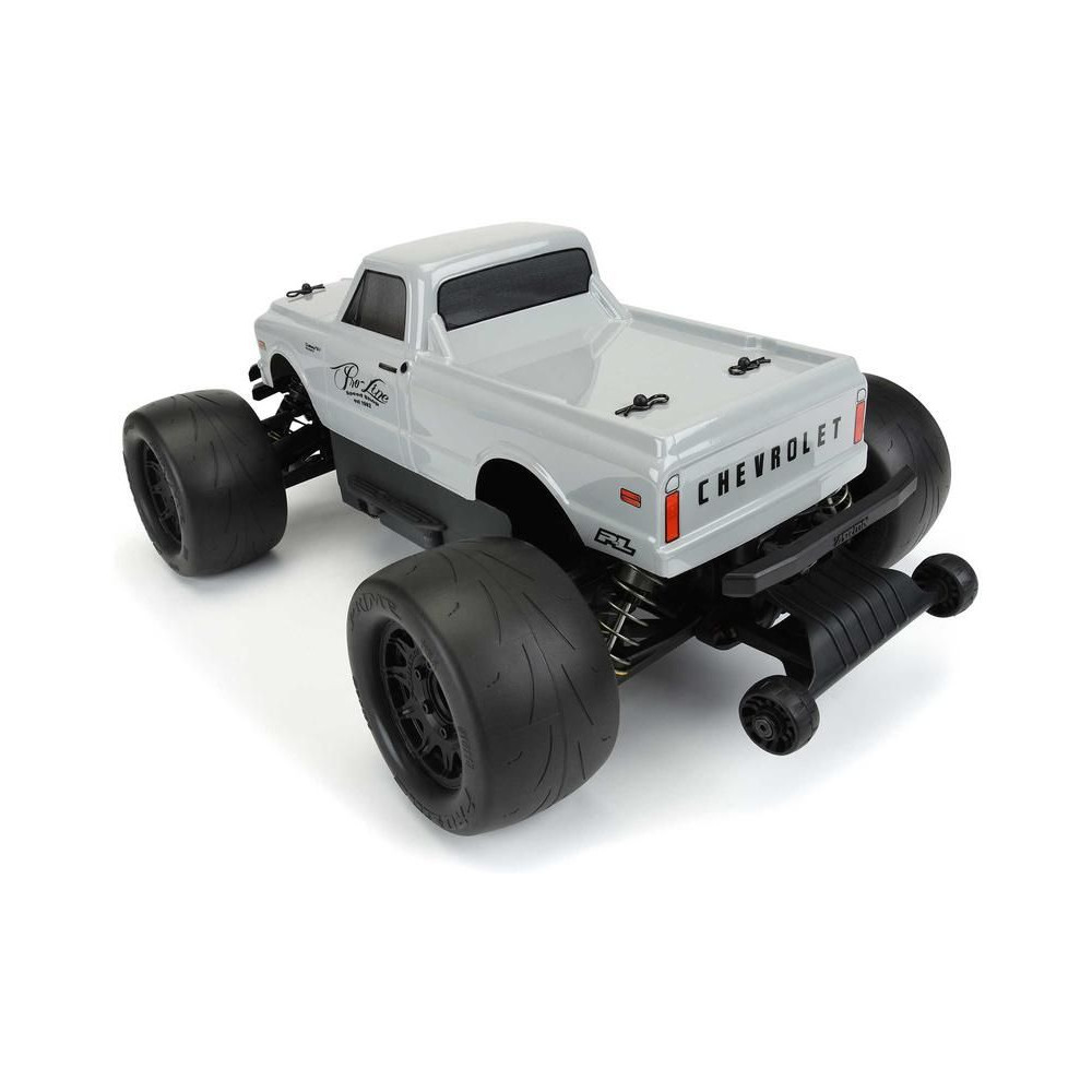 Pro-Line karosszéria szürke 1972 Chevy C-10, Stampede & Granite 1:10 méretarányú RC autó modellekhez, tengelytáv 231mm, hossz 366mm, szélesség 150mm. Tartós lexánból készült.