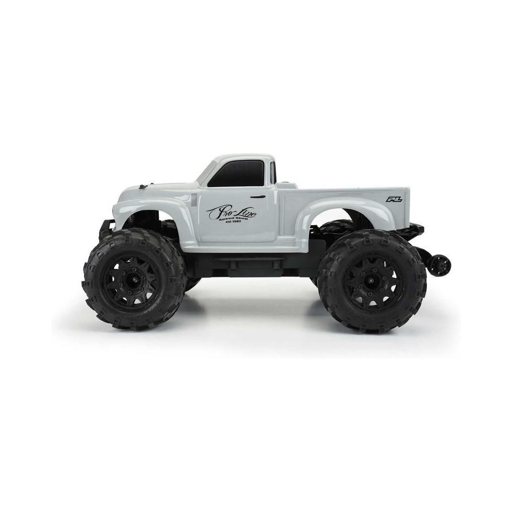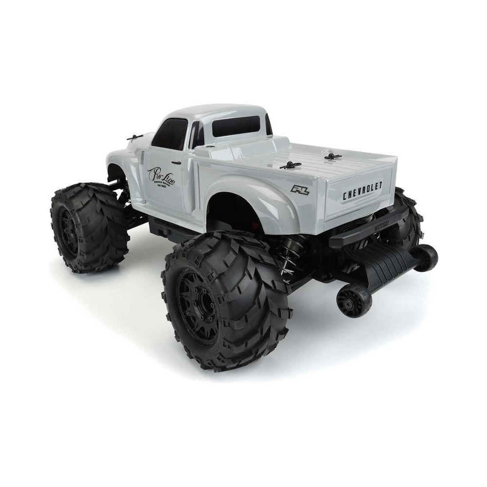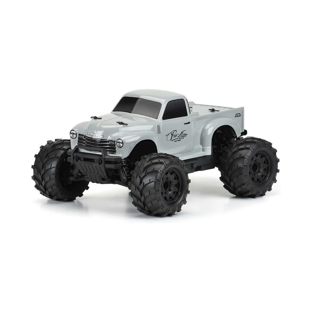 Pro-Line Early 50's Chevy Tough szürke karosszéria Stampede & Granite 1:10 méretarányú RC autó modellekhez, tengelytáv 249mm, hossz 409mm, szélesség 170mm. Tartós lexánból készült.