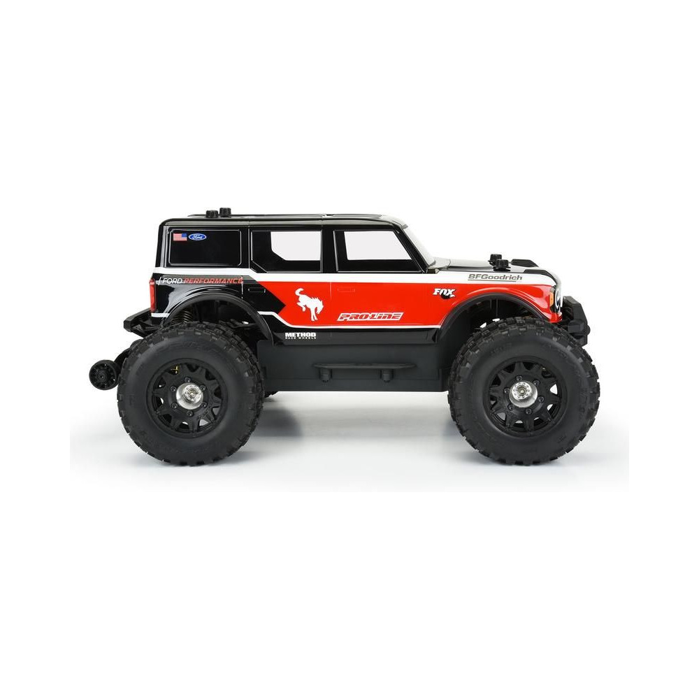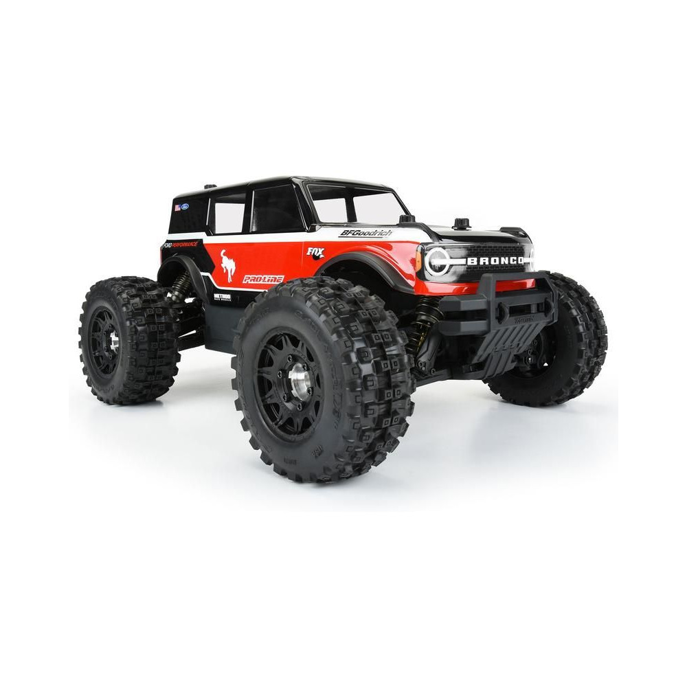 Pro-Line body clear 2021 Ford Bronco, a Stampede, Granite, Vorteks RC modellekhez 1:10 méretarányban, tengelytáv 267mm, hossz 396mm, szélesség 174mm. Tartós lexánból készült.