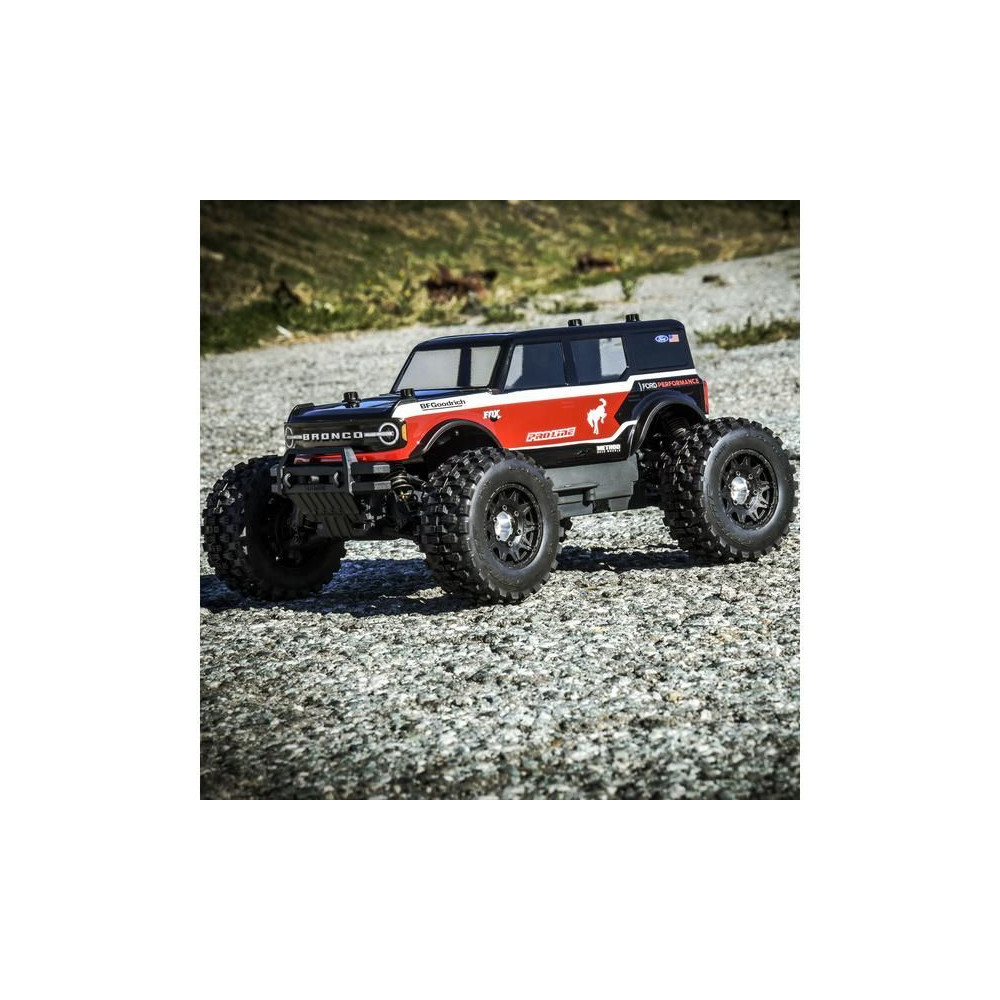 A legendás Bronco a 2021-es Ford Broncóval tért vissza összetéveszthetetlen retro-modern stílusával, és most már te is díszítheted 1:10 méretarányú Stampede®, Granite™ vagy Vorteks™ modelledet ezzel a karosszériával. A Bronco Pro-Line modellező részletekkel rendelkezik, így teljesen megváltoztathatja autója megjelenését. Az egy darabból álló Bronco karosszéria átlátszó, így úgy alakíthatod át RC autód kinézetét, ahogyan csak szeretnéd! Ha Ford® rajongó vagy, ez a karosszéria kötelező darab a Monster Truckodhoz. Szerezd meg a saját Ford® Bronco karosszériádat még ma!