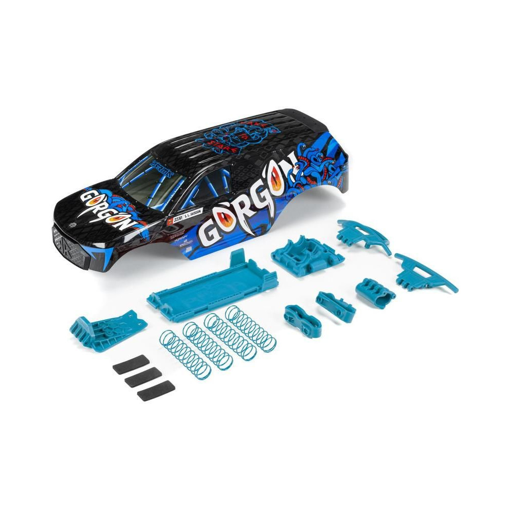 Arrma Gorgon test kék. Kész festett test matricákkal. Színben illeszkedő alkatrészekkel: akkumulátortartó, lökhárítók, differenciálműfedél, csúszótalpak, rugók.