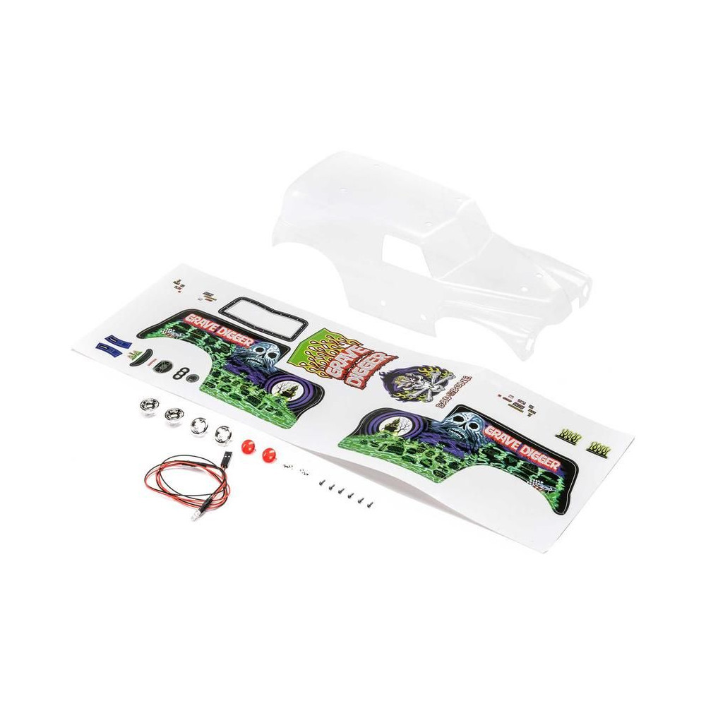 Pótalkatrész RC modell autóhoz Losi Mini LMT: karosszéria Grave Digger festetlen.