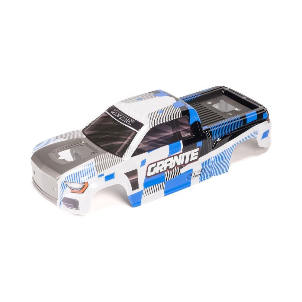 Alkatrész az Arrma Granite 223S BLX 1:10 4WD RC modellautóhoz: stoplik nélküli kék karosszéria. Festett, applikált grafikákkal díszített.