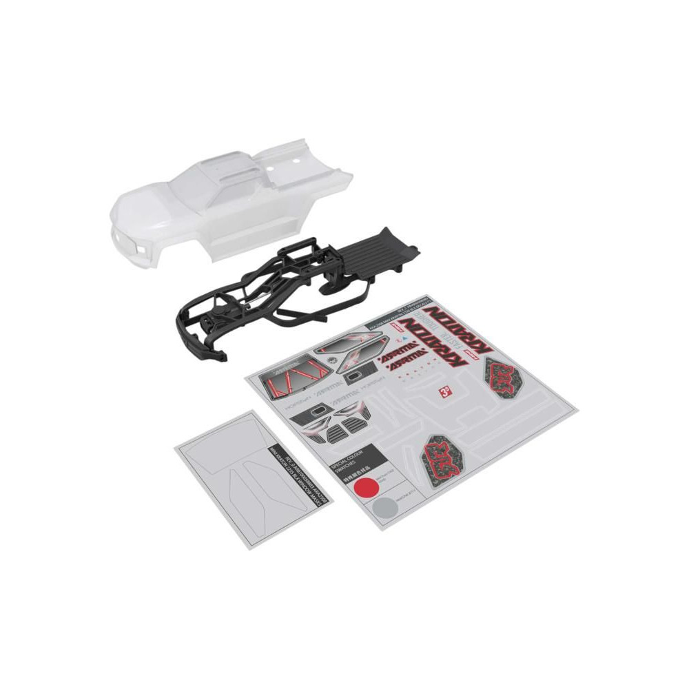 Arrma festetlen karosszéria: Mini Kraton 1:16. Pácolást igényel. Előre fúrt lyukakkal díszítve. Tartós polikarbonátból készült. Matricalap mellékelve.