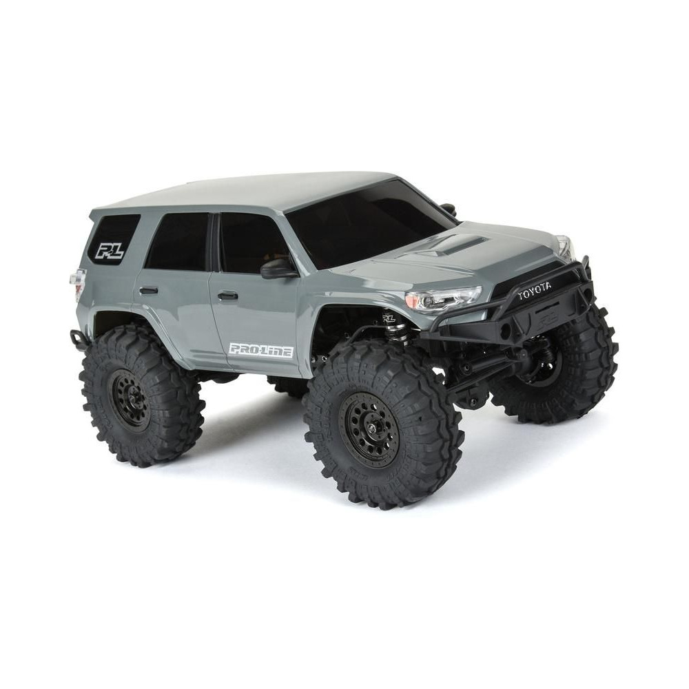 Pro-Line karosszéria szürke színben, összeszerelt Toyota 4Runner 2023-as modellhez, Axial SCX24 RC autómodellekhez 1:24 méretarányban, tengelytáv 132 mm, hosszúság 211 mm, szélesség 84 mm. Tartós műanyagból készült. Modell alkatrészeket és LED világítást tartalmaz.