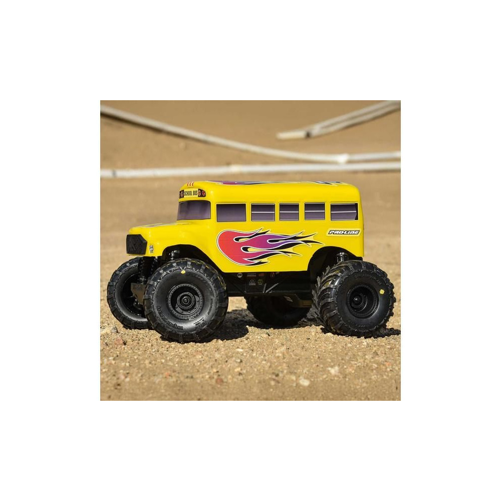 Pro-Line átlátszó karosszériás iskolabusz (1 db). 1:16 méretarányú Arrma Gorgon GROM távirányítós autómodellekhez, vagy Gorgon tartókkal ellátott Arrma Quake GROM-hoz tervezve. A karosszéria tartós polikarbonátból készült.