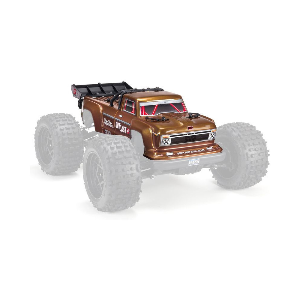 Arrma test bronz: Outcast 4S 4x4 - festett karosszéria tartós polikarbonátból, részletes matricák, előfúrt rögzítőfuratok. Aerodinamikai elemek.