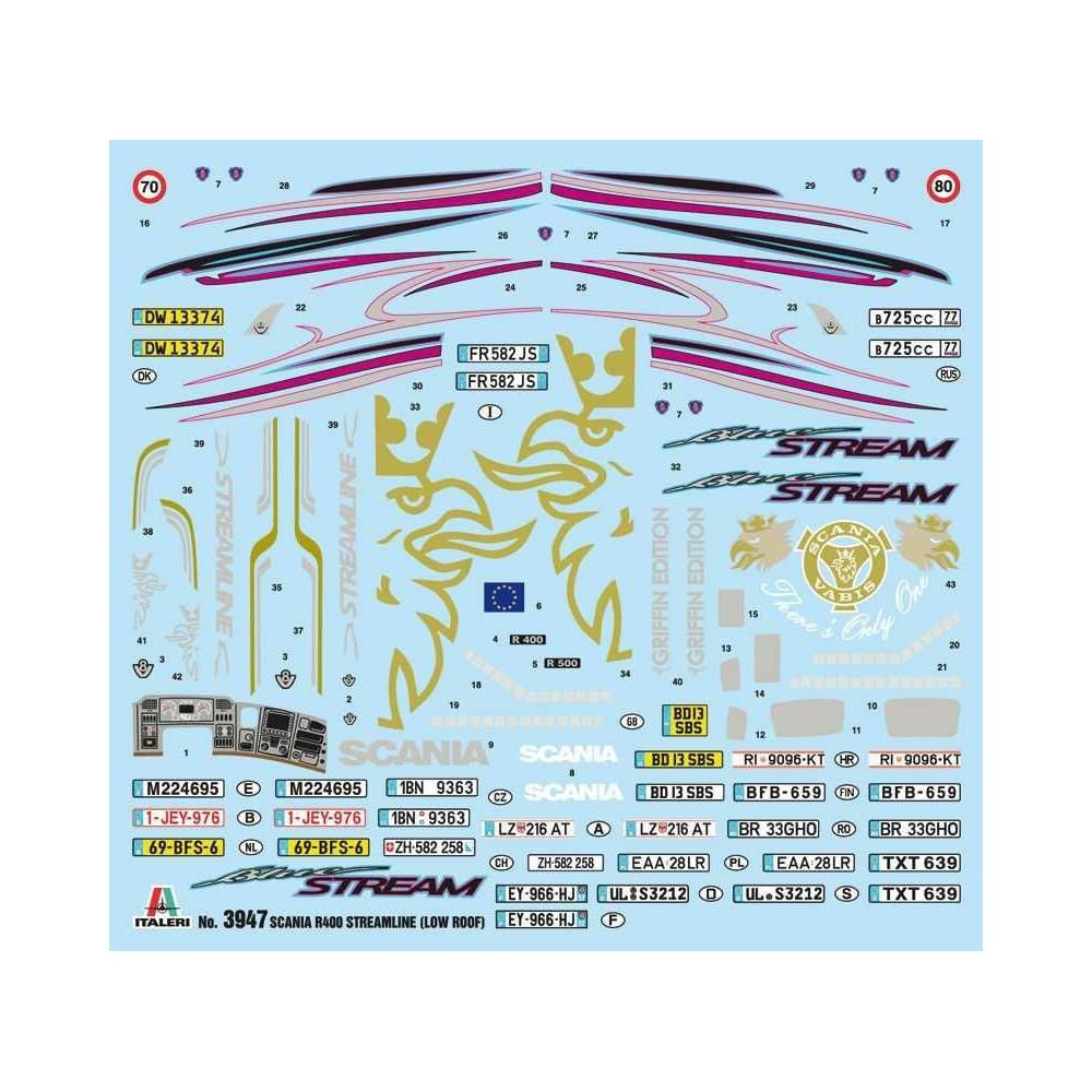 A Scania R-sorozatú Streamline-t úgy tervezték, hogy megfeleljen az üzemanyag-takarékosság, a vezetői kényelem és a megbízhatóság legmagasabb követelményeinek. Az egyedi kialakítást tökéletesen kiegészítik az új, kivételes belső terek, amelyek kiváló vezetői kényelmet és a színek és anyagok széles választékát kínálják. V8-as és soros négyhengeres motorokkal egyaránt kapható. A robusztus, érzékeny és hatékony Scania V8-as motorokat úgy tervezték, hogy a legkeményebb munkákhoz is megfeleljenek. Modellünk matricákkal és precíziósan vágott fémbetűkkel is rendelkezik, amelyeket csak fel kell ragasztania, hogy ez a traktor a valós élet hű másolatává váljon.