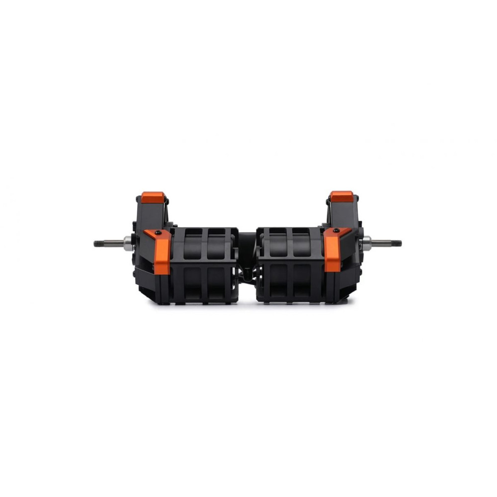 Gear Drive hajtás az Exway Atlas Pro-hoz (hátsó). Az egyes motorok maximális teljesítménye 2400 watt. Áttétel 12:57. A fogaskerekek krómmal és molibdénnel dúsított acélból készülnek. A motorokat fémötvözetből készült ketrec védi.
