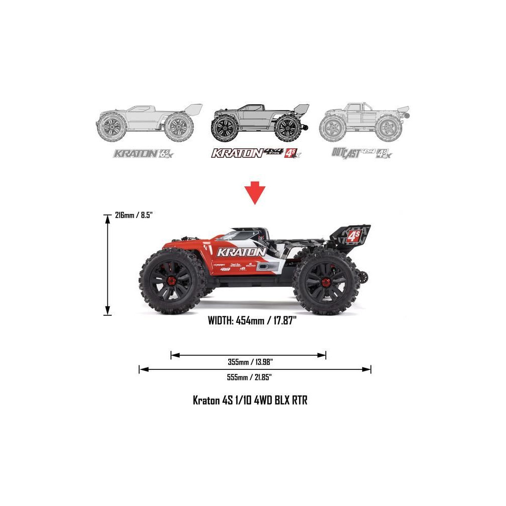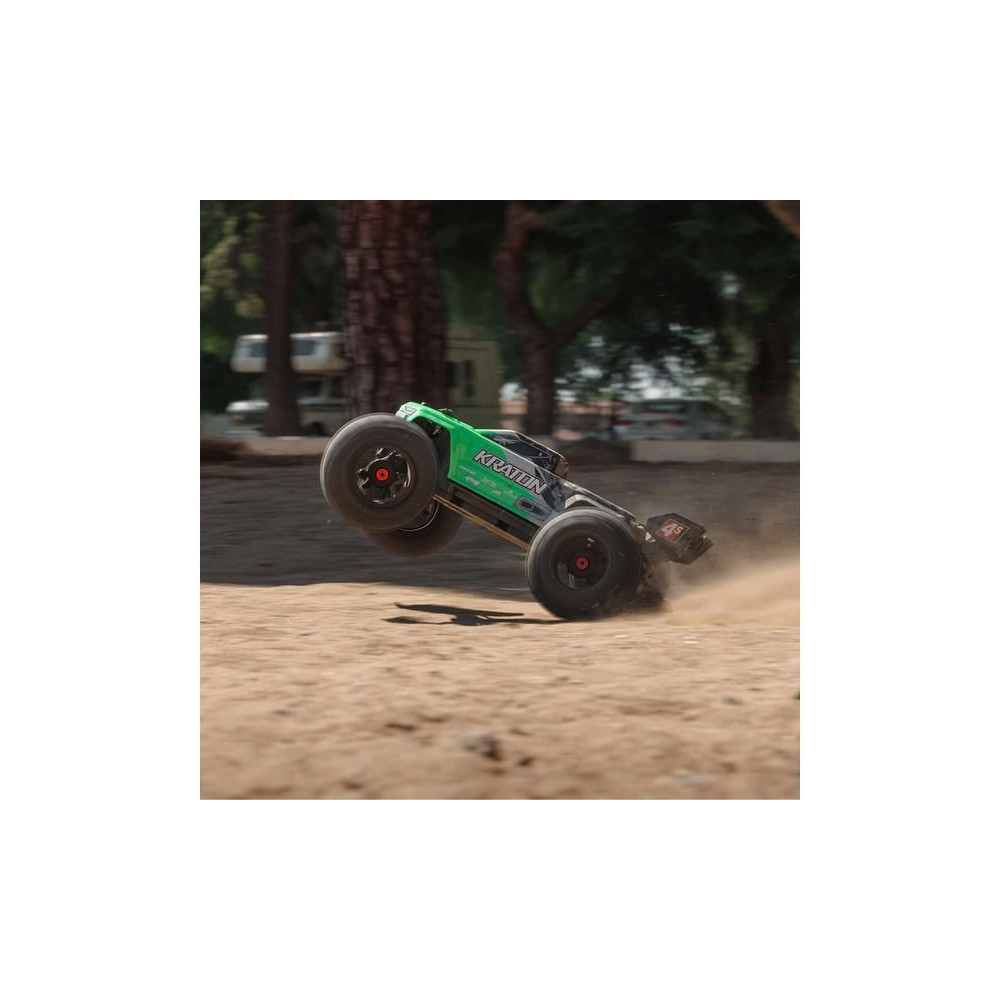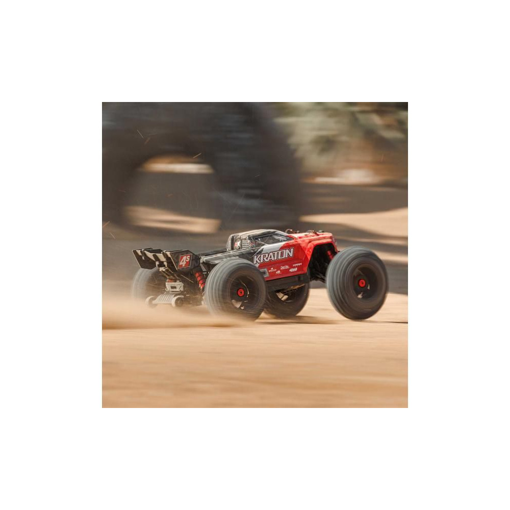 Az Arrma Kraton 4S V2 BLX V2 BLX RC modellt egy brutális gyorsulású kefe nélküli motor hajtja, és akár 80 km/h sebességgel is haladhat. Mostantól erősebb elektronikát és középső differenciálművet tartalmaz. Tartós kompozit váz és fém hajtáslánc, olajjal töltött lengéscsillapítók és részletes karosszéria.