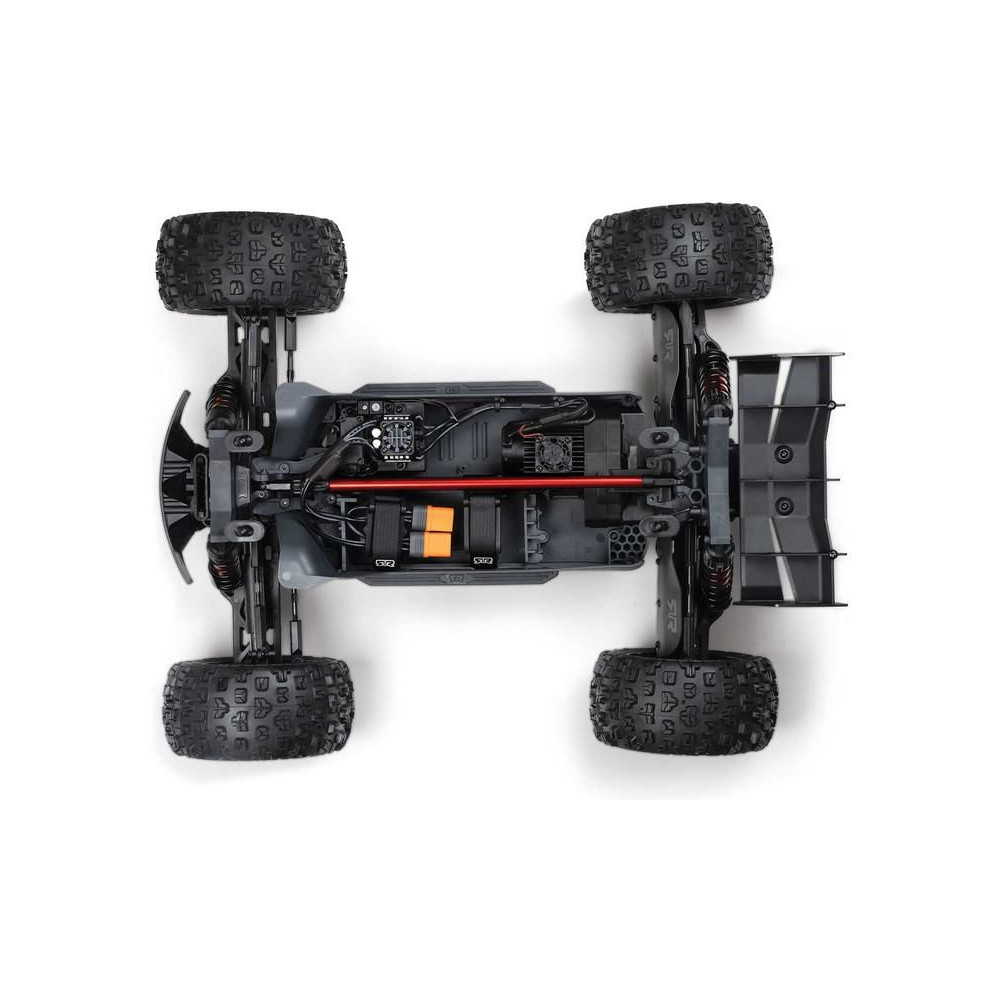 A fent említett fejlesztések olyan bevált ARRMA 4S BLX jellemzőkkel párosulnak, mint - hosszú rugóútú alumínium olajrugók, széles, masszív karok, fém differenciálművek és EXtreme Bash CVD acél első és hátsó hajtótengelyek a megállíthatatlan teljesítményleadás érdekében. A modell alváza a népszerű, könnyen hozzáférhető ARRMA moduláris kialakítással is rendelkezik, hogy a rutinszerű karbantartás gyors és egyszerű legyen.