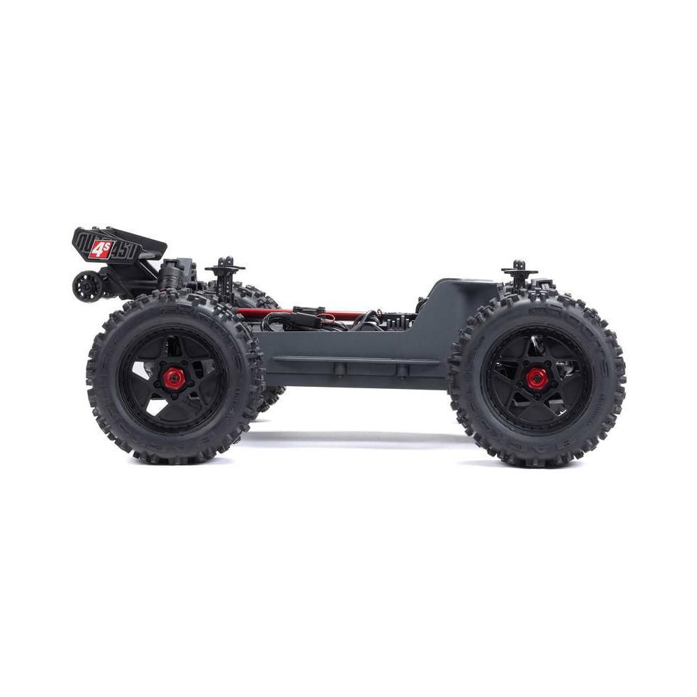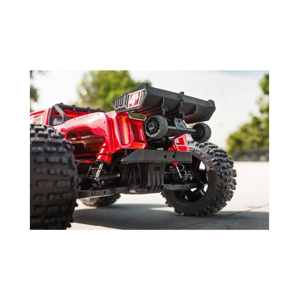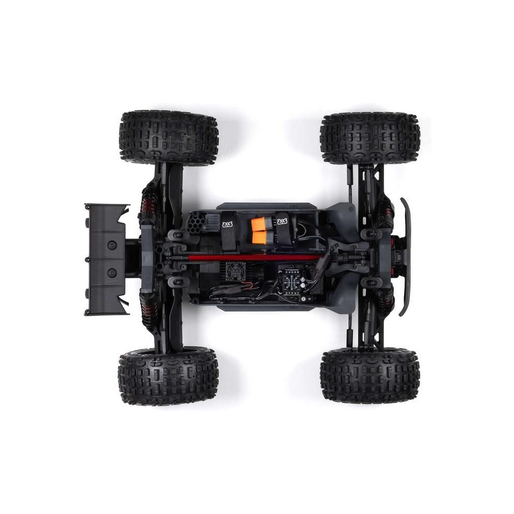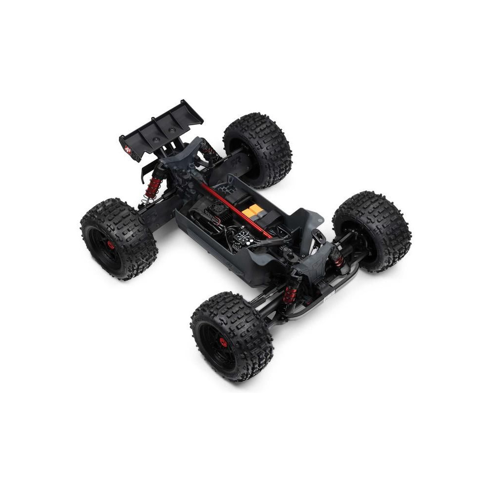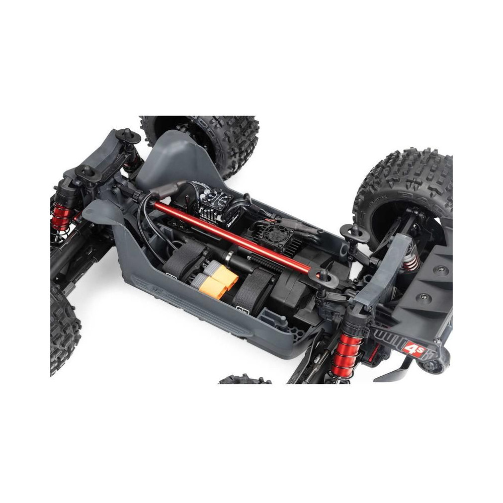 A fent említett fejlesztések olyan bevált ARRMA 4S BLX jellemzőkkel párosulnak, mint - hosszú rugóútú alumínium olajrugók, széles, masszív karok, fém differenciálművek és EXtreme Bash CVD acél első és hátsó hajtótengelyek a megállíthatatlan teljesítmény leadásért. A modell alváza a népszerű, könnyen hozzáférhető ARRMA moduláris kialakítással is rendelkezik, hogy a rutinszerű karbantartás gyors és egyszerű legyen.