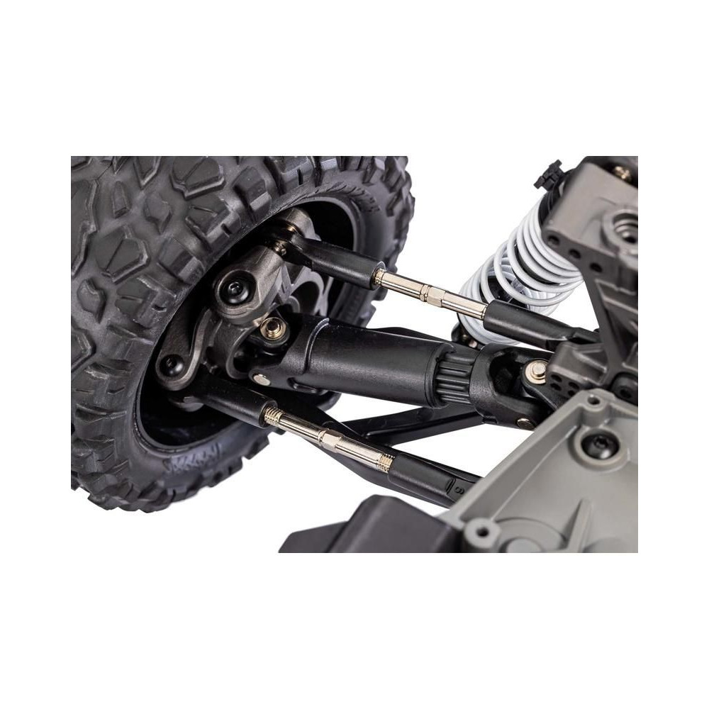 A karok hosszú lökhossza tompítja az éles ütközéseket is, és javítja a modell kezelhetőségét. Minden helyzetben precíz és gyors kormányreakcióval rendelkezik. A futóművön állítható olajcsillapítók szolgálják a végtelen irányíthatóságot.
