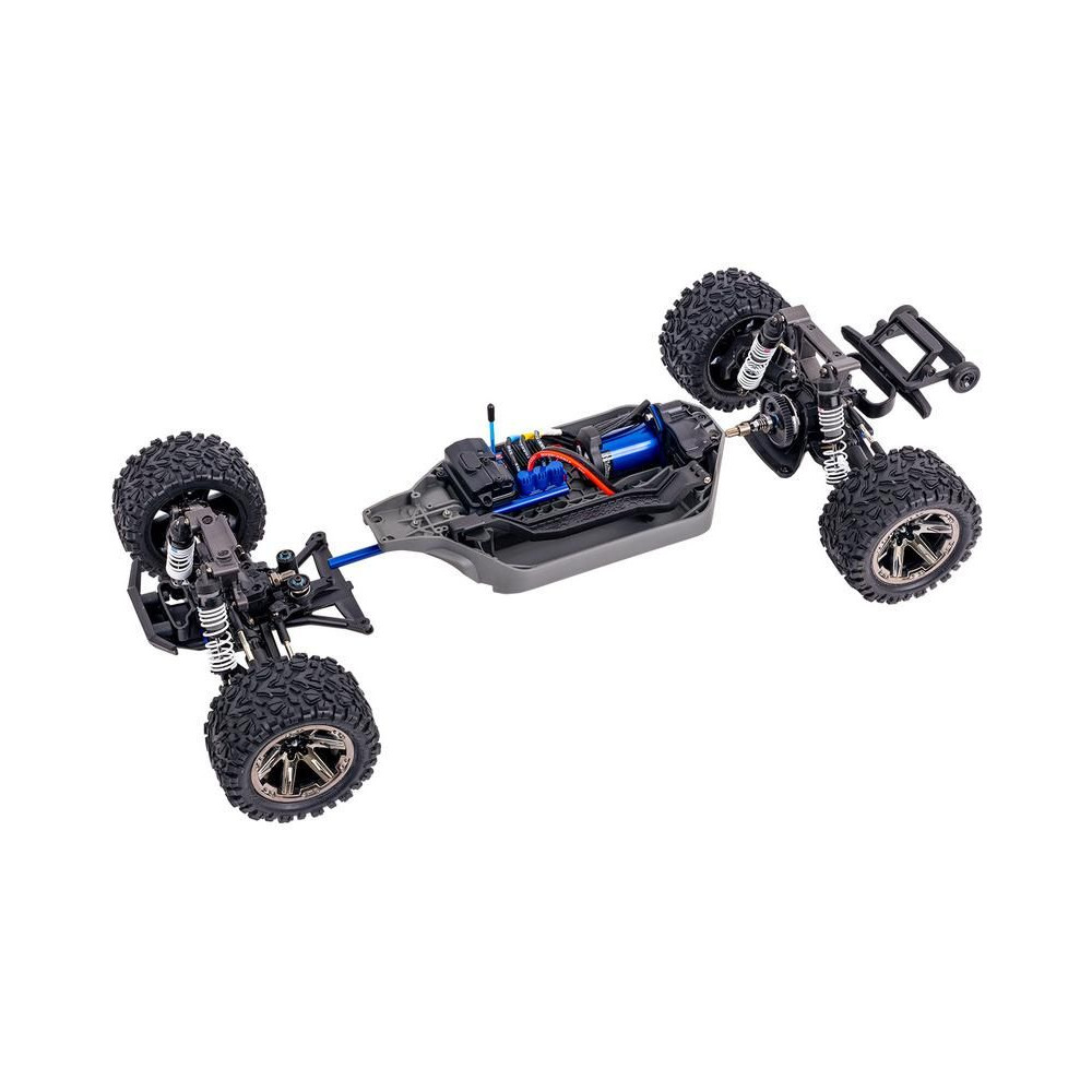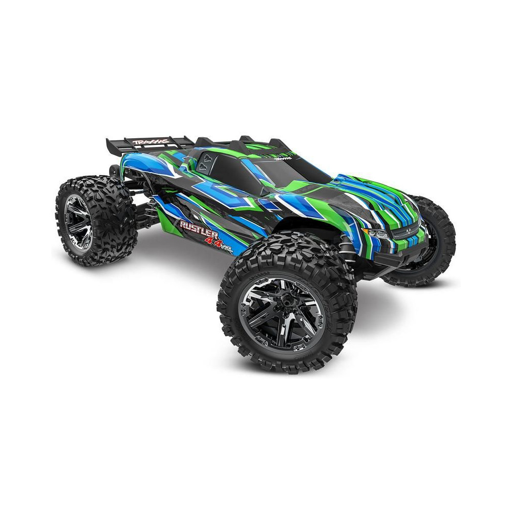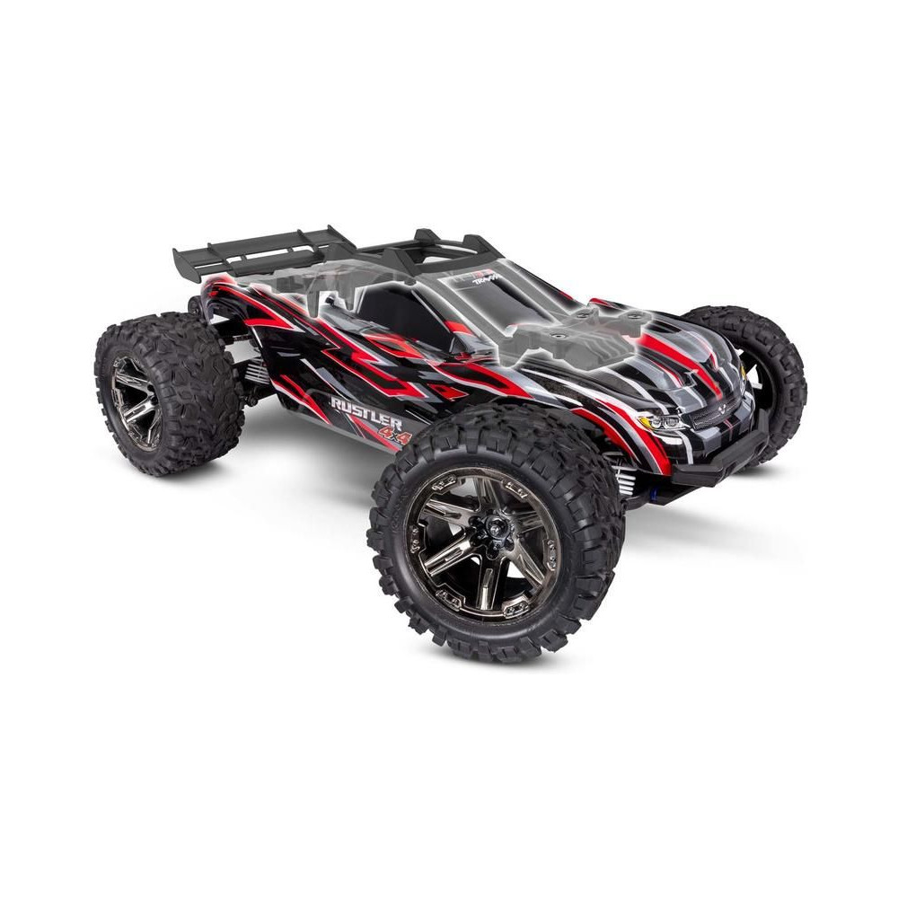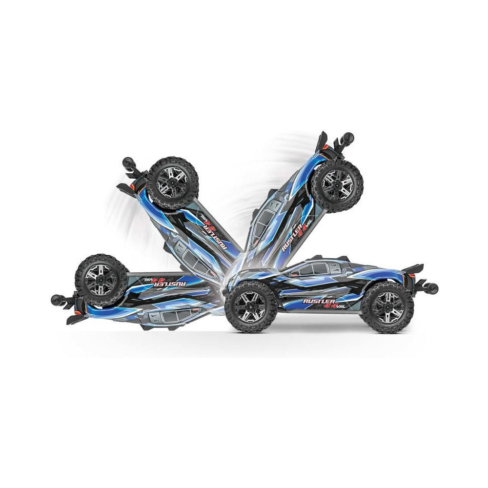 A Traxxas Rustler 1:10 HD távirányítós autó modellje brutális erővel és akár 104 km/h sebességgel, a Velineon 3500kV-os inverteres motornak és a VXL-3S vezérlőnek köszönhetően. A 4x4-es meghajtás és a TSM elektronikus menetstabilizátor hozzájárul a jobb kezelhetőséghez. A nagy tartósság érdekében a modell gyárilag Extreme Heavy Duty készlettel van felszerelve. A letisztult megjelenés és az egyszerű akkumulátorcsere érdekében gyorskioldású karosszéria rögzítő rendszert használnak.