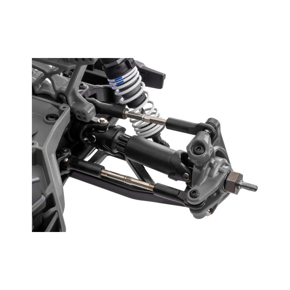 A karok hosszú lökhossza tompítja az éles ütközéseket is, és javítja a modell kezelhetőségét. Minden helyzetben precíz és gyors kormányreakcióval rendelkezik. A futóművön állítható olajcsillapítók szolgálják a végtelen irányíthatóságot.