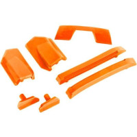 Amikor a modell gurulásba kerül, a karosszérián műanyag védőelemek vannak, amelyek megvédik a karosszériát a karcolásoktól vagy törésektől. Ha a műanyag alkatrészek elhasználódnak, egyszerűen cseréld ki őket.