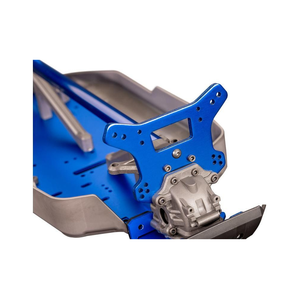 Az RC modell alváza könnyű és tartós, 3,2 mm vastag alumínium lemezből áll. Az élek a teljes hosszában formázottak a nagyobb szilárdság érdekében. A hat ponton rögzített óriási első és hátsó keresztmerevítők fokozott szilárdságot biztosítanak a modell becsapódásakor leginkább kitett pontokon, amelyek a futómű nyakai a felfüggesztésnél. Egy szabadalmaztatott T-alakú középső merevítő szolgál a teljes összeköttetéshez és megerősítéshez. Az alvázhoz és a középső merevítőhöz hasonlóan a lengéscsillapító tornyok is alumíniumból készültek, gyönyörű kék eloxált felülettel.