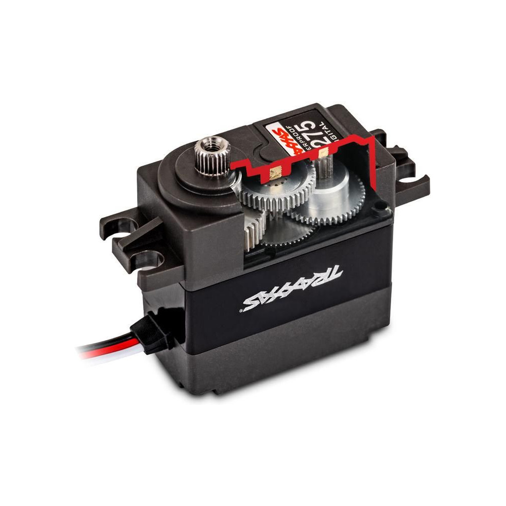 A vadonatúj, vízálló* Traxxas 2275 kormányszervó megdöbbentő 25 kg.cm. A szervó fém fogaskerekekkel, két golyóscsapággyal rendelkezik a zökkenőmentes működésért, és egy fém középső doboz biztosítja a hatékony hűtést.