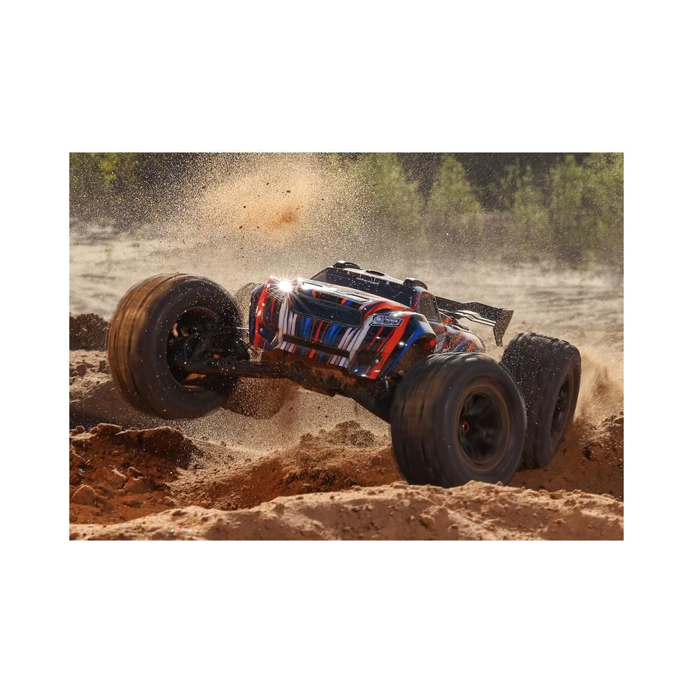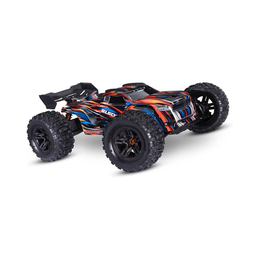 Hihetetlenül erős RC modellautó Traxxas Sledge 1:8, a legapróbb részletekig finomhangolva.112 km/h sebességig. Elektronika telemetria támogatással és TSM stabilizálással, TQi RC kit, alumínium alváz, küllők nélküli karosszéria, újonnan megerősített Sledgehammer gumikkal.