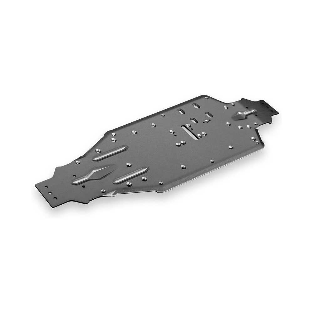 Az RC modell alváza könnyű és tartós, 3,2 mm vastag alumínium lemezből áll. Az élek a teljes hosszában formázottak a nagyobb szilárdság érdekében. A hat ponton rögzített óriási első és hátsó keresztmerevítők fokozott szilárdságot biztosítanak a modell becsapódásakor leginkább kitett pontokon, amelyek a futómű nyakai a felfüggesztésnél. Egy szabadalmaztatott T-alakú középső merevítő szolgál a teljes összeköttetéshez és megerősítéshez. Az alvázhoz és a középső merevítőhöz hasonlóan a lengéscsillapító tornyok is alumíniumból készültek, gyönyörű kék eloxált felülettel.