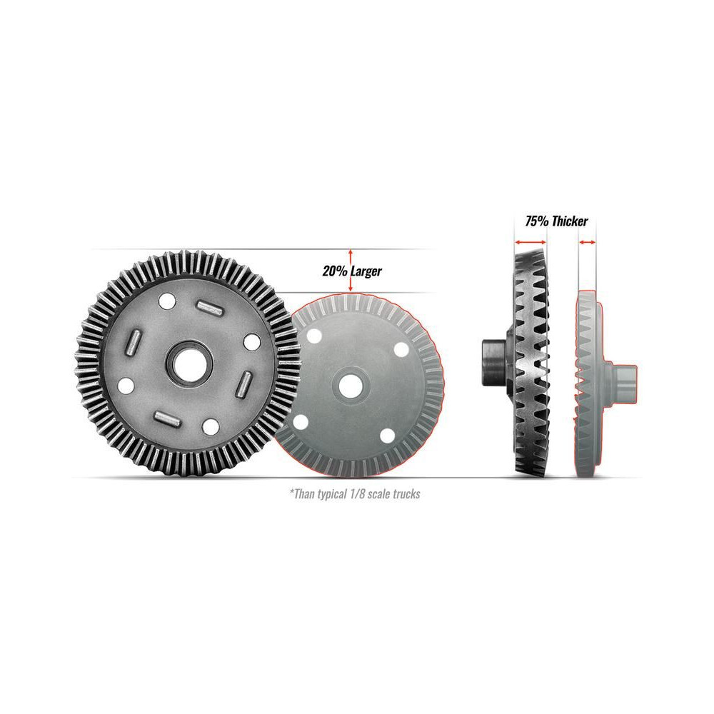 A modell 3,8 colos küllős kerekeket használ, amelyeken SledgeHammer 6,7 colos motocross ihletésű gumiabroncsok vannak. A nagy merevségű futófelület hosszú élettartamot és tartósságot biztosít. Ezek a gumiabroncsok továbbfejlesztett kerékcsatlakozási rendszerrel rendelkeznek. Eddig ezek a gumik a Traxxasnál voltak kaphatók tuningalkatrészként. Most már az alapban is megtalálhatóak ehhez a modellhez!