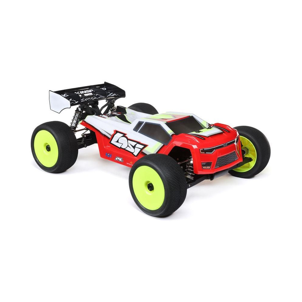 A Losi 8IGHT-XTE Electric Truggy 1:8 4WD RTR versenyautó modell közvetlenül használható versenyzésre. Tartalmaz nagy teljesítményű szenzoros AC motort, Spektrum Firma 130A vezérlőt, tartós szervokormányt. Fém alváz és felfüggesztés alkatrészek. TLR frissítő alkatrészek kaphatók.