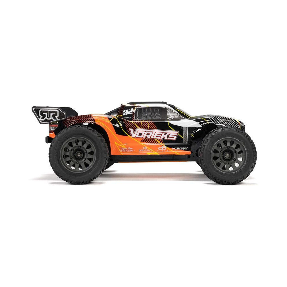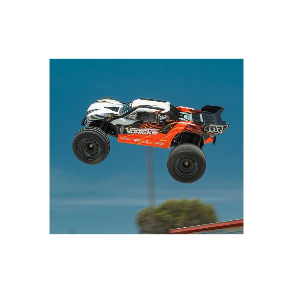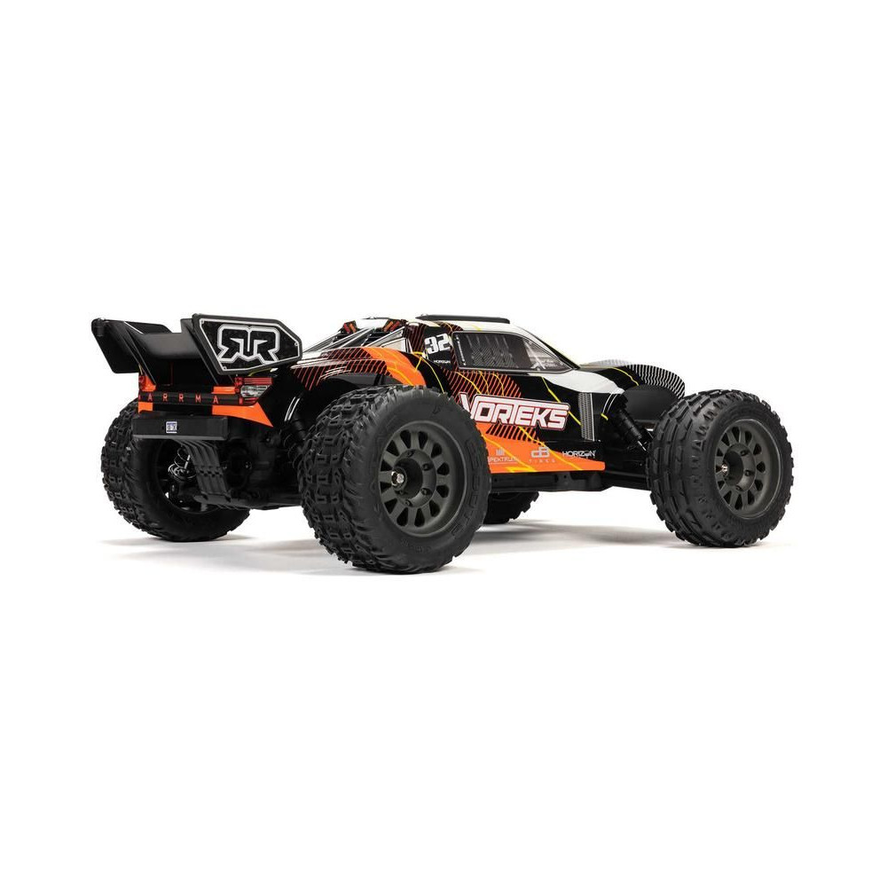 RC modell autó Arrma Vorteks Mega 550 1:10 RTR Truggy 2WD, független felfüggesztés, olajos lengéscsillapítók, arányos kormányzás és DC motor. Mivel az egyik legolcsóbb 1:10 méretarányú RC autó, különösen a kezdő vezetők és a gyerekek számára lesz vonzó. Teljes körű felszereltségének köszönhetően azonban a tapasztaltabb vezetők számára is alkalmas. A modell megőrzi az Arrma modellek minden előnyét, mint például a tartósság, a nagy teljesítmény és az alkatrész-támogatás.