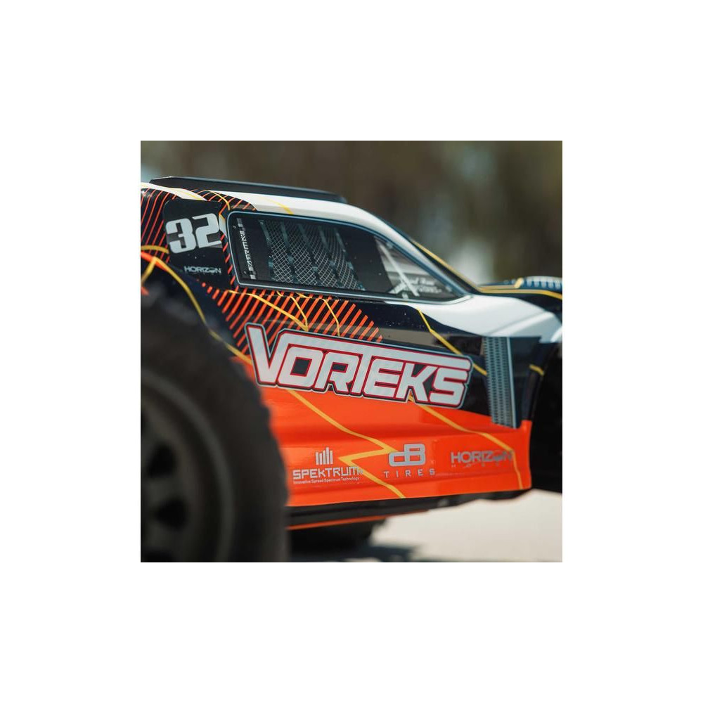 A Vorteks széles nyomtávval rendelkezik a stabil kezelés érdekében. Az alacsony, sportos futómű lehetővé teszi, hogy nagy sebességgel vegye be a kanyarokat. A modell alkalmas kemény burkolatokra, kavicsos és alacsony fűre. A kompozit váz a kemény ütközéseknek is ellenáll. A felhasznált fém fogaskerekek elég tartósak ahhoz, hogy esetleg AC meghajtásra lehessen frissíteni. Az új dBoots Dirtrunner ST első gumiabroncsok speciális futófelületi kialakítása megkönnyíti az ugrást és a kanyarodást az egyenetlen felületeken.