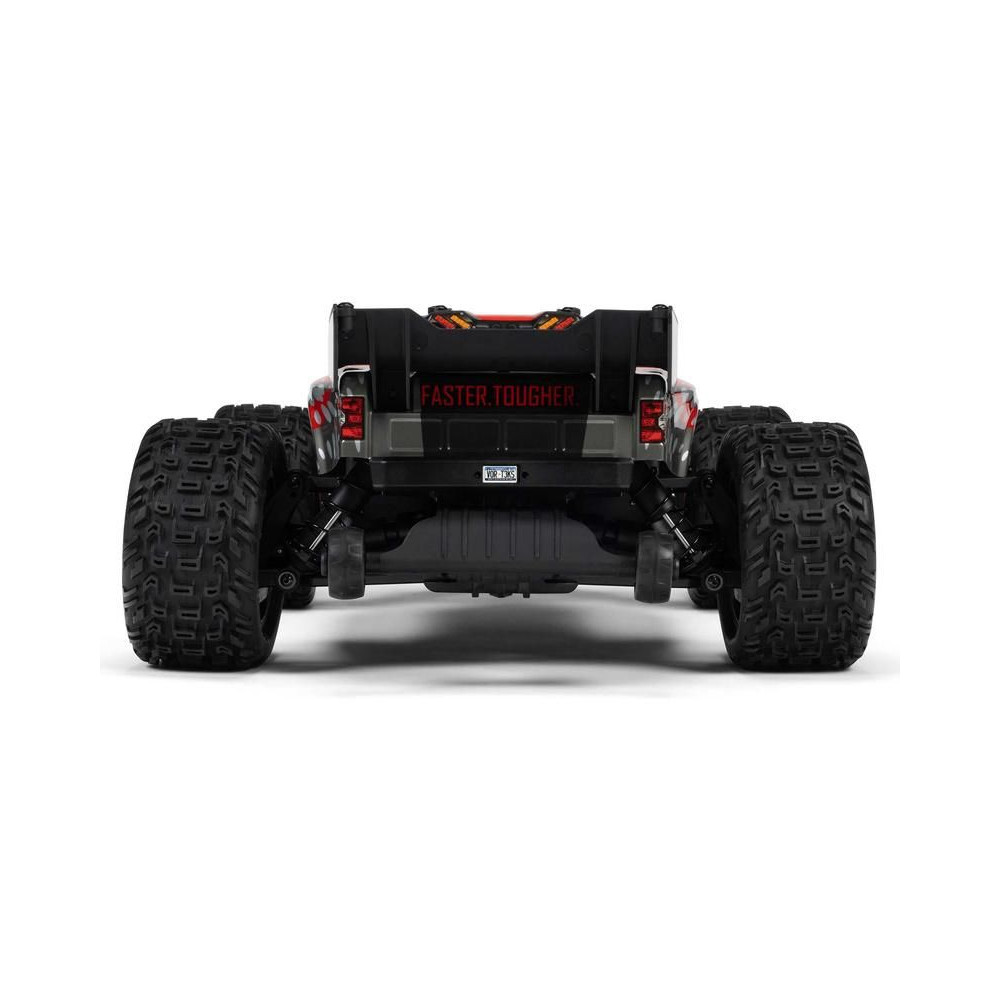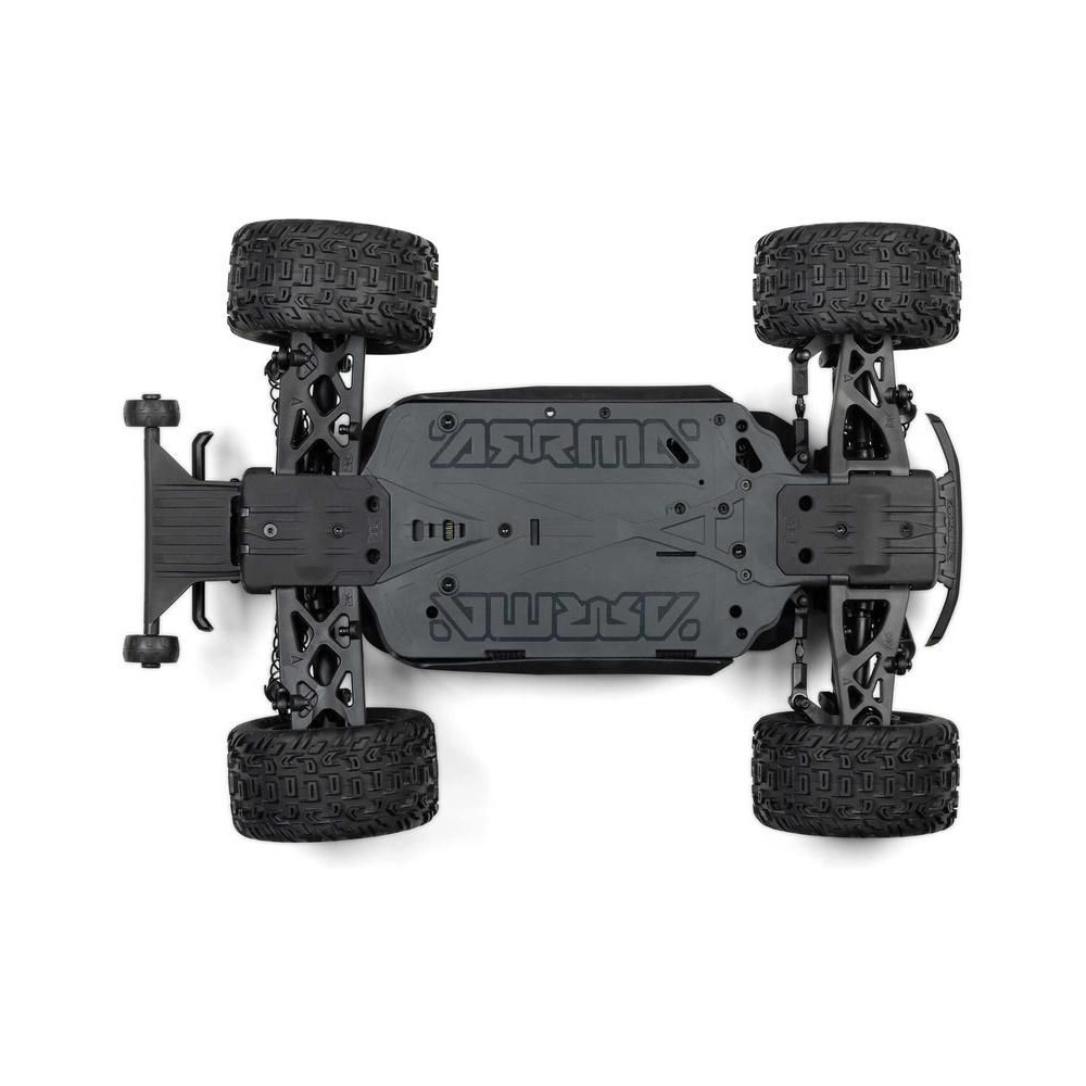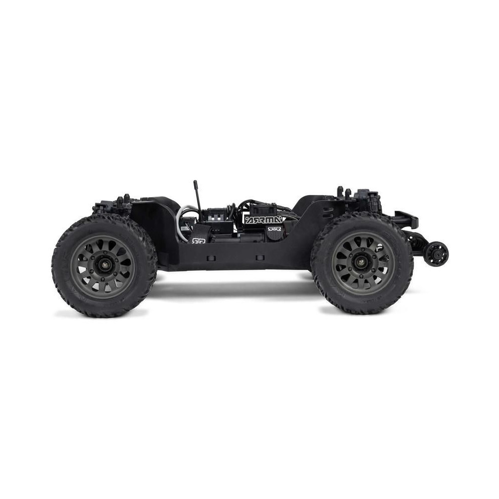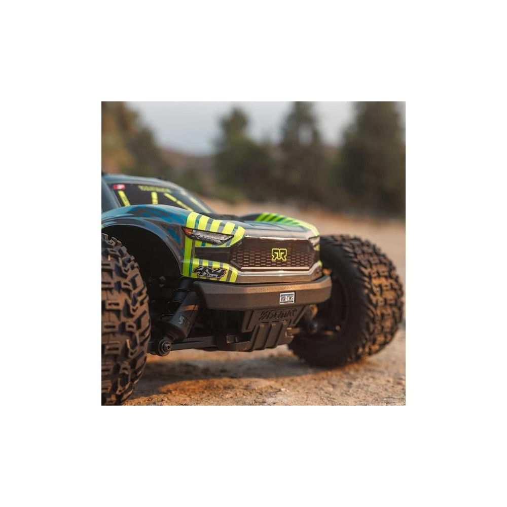 A bevált, tartós ARRMA® 4X4 platform lehetővé teszi a nagy sebességű vezetést szinte bármilyen környezetben – terepen, kavicson és füvön, parkolókban, valamint burkolt és aszfalt felületeken. Az alváz tartósságát az erős kompozit alváz és a megnövelt magasságú porvédők biztosítják. A használt fém fogaskerekek kellően tartósak a váltakozó áramú meghajtáshoz. A teljesítmény az első és hátsó differenciálmű segítségével jut el az egyes kerekekhez. A maximális tapadást a bevált dBoots gumiabroncsok biztosítják. A Spektrum SLT adó biztonságos, meghibásodás nélküli működést biztosít, a gondtalan vezetés érdekében a modell vízálló* alkatrészeket használ - egy Spektrum 2 az 1-ben 85A vevővel ellátott szabályozót és egy nagy nyomatékú, fém fogaskerekes Spektrum S662 szervovezérlést.