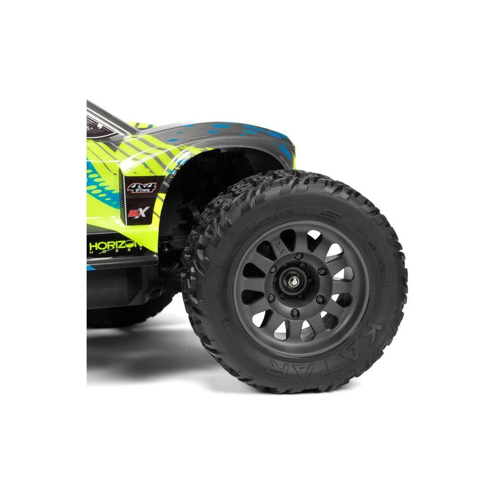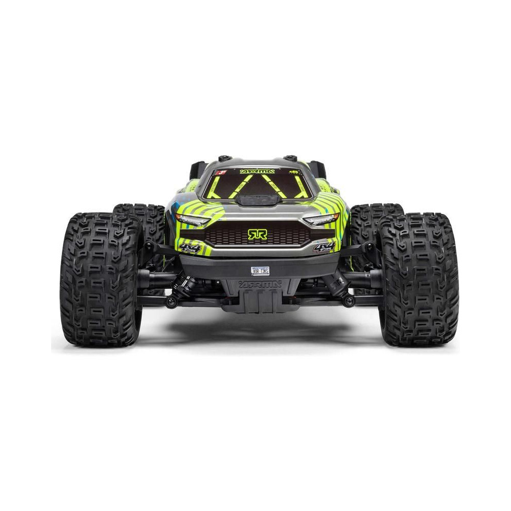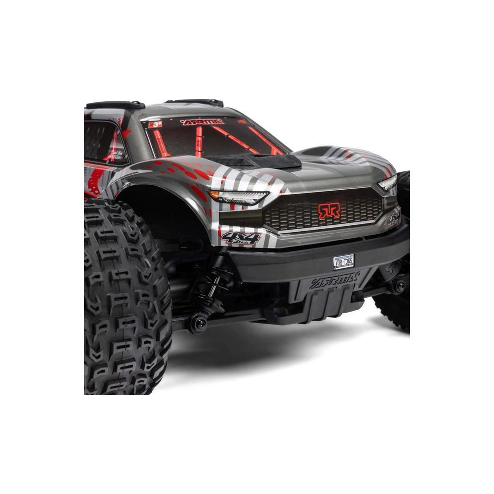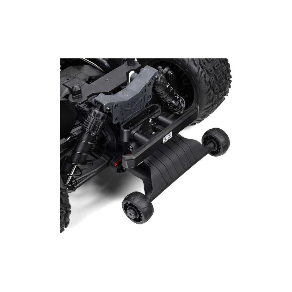 A bevált, tartós ARRMA® 4X4 platform lehetővé teszi a nagy sebességű vezetést szinte bármilyen környezetben – terepen, kavicson és füvön, parkolókban, valamint burkolt és aszfalt felületeken. Az alváz tartósságát az erős kompozit alváz és a megnövelt magasságú porvédők biztosítják. A használt fém fogaskerekek kellően tartósak a váltakozó áramú meghajtáshoz. A teljesítmény az első és hátsó differenciálmű segítségével jut el az egyes kerekekhez. A maximális tapadást a bevált dBoots gumiabroncsok biztosítják. A Spektrum SLT adó biztonságos, meghibásodás nélküli működést biztosít, a gondtalan vezetés érdekében a modell vízálló* alkatrészeket használ - Spektrum 2 az 1-ben 85A-es vevőszabályozót és Spektrum S662 szervovezérlést nagy nyomatékkal és fém fogaskerekekkel.