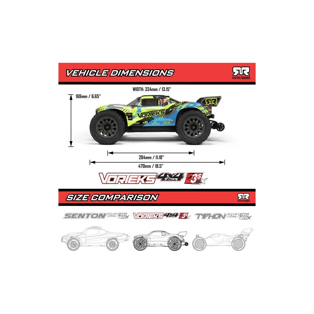 Az Arrma Vorteks 223S BLX távirányítós modellautó 1:10 méretarányban, 4WD meghajtással, erőteljes AC motorral és akár 80 km/h sebességgel. Független felfüggesztés, olajos lengéscsillapítók, Spektrum 80A SLT 2-3S LiPo vezérlőegység, DSC elektronikus stabilizálás.