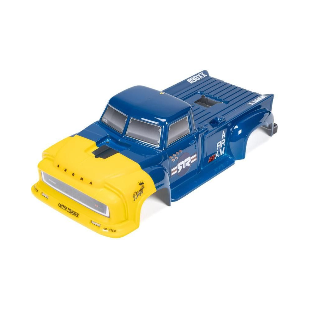 Alkatrész Arrma 1:8 Notorious 6S BLX V6 RC autómodellekhez: kék karosszéria. Polikarbonát test, szegélyezve a könnyű összeszerelés érdekében. Klip nélküli rögzítőrendszerhez tervezve. A karosszéria-rögzítő készlet nem része a csomagnak.