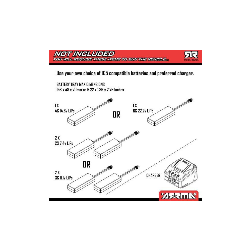 Mivel a hálózati hajtás 4-6S LiPo akkumulátorokhoz van méretezve, kezdetben egy 4S LiPo akkumulátorral (külön megvásárolható) vezetheted, és amint a vezetési képességeid javulnak, csatlakoztathatsz egy 6S LiPo akkumulátort (külön megvásárolható) a modellhez, és akár extrém 104 km/h-ig növelheted a teljesítményt és a sebességet. További funkció a gáz 75%-ra vagy 50%-ra korlátozásának lehetősége az adón, így a modell kevésbé tapasztalt sofőröknek is alkalmas.